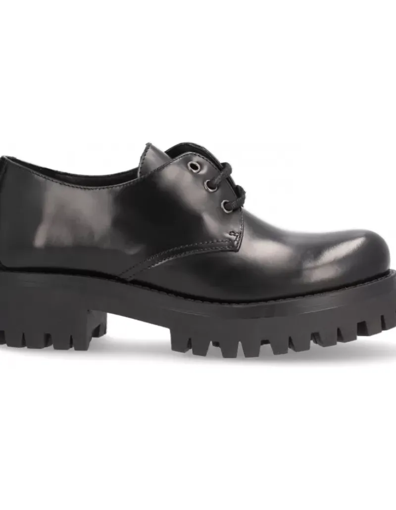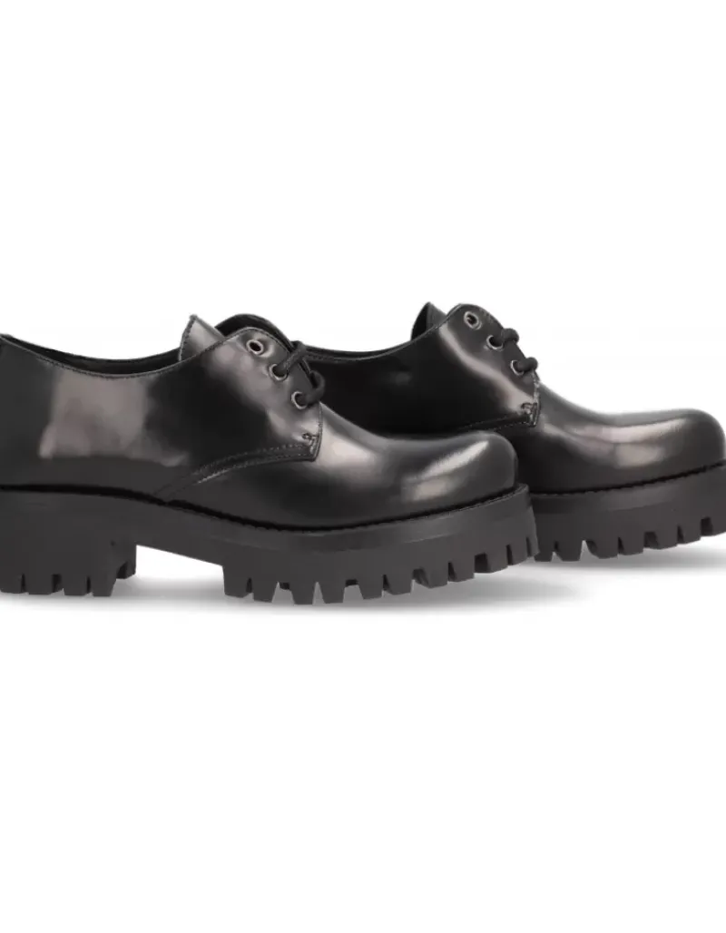 Zapato Para Mujer Alpe Eden, Fabricado En Piel (Piel) De Color Negro Con Sin Tacon De 2,5 Cm, Suela Pu Y Puntera Redonda, Con Cierre Mediante Cordon.