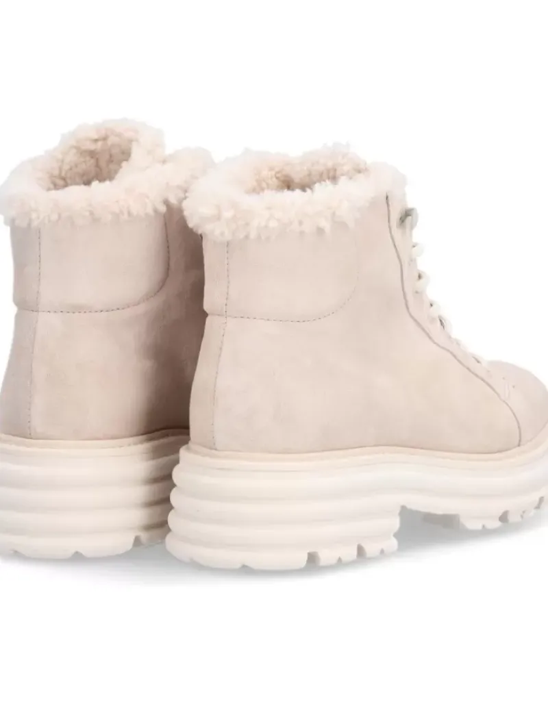 Bota Para Mujer Alpe Alabama, Fabricada En Piel (Baby Silk) De Color Calcare Con Tacon De 5 Cm, Suela Antideslizante Y Puntera Redonda, Con Cierre Mediante Cordon Y Cana Baja.
