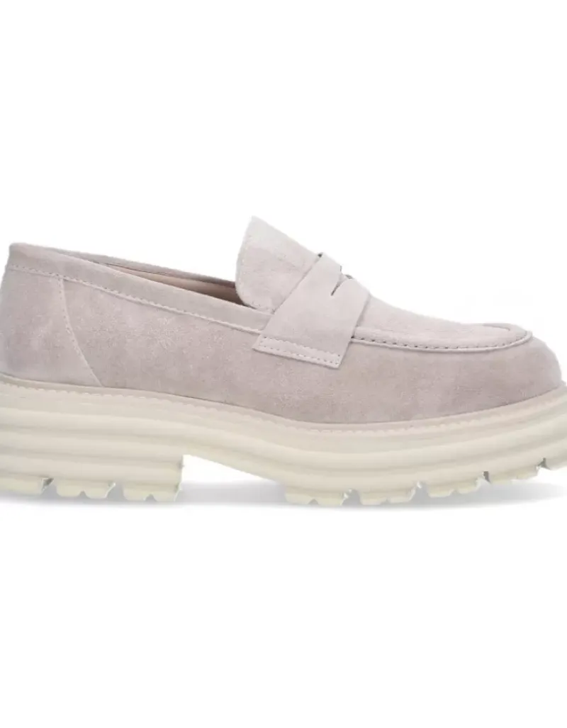 Zapato Para Femme Alpe Alabama, Fabricado En Piel (Baby Silk) De Color Taupe Con Tacon De 5 Cm, Suela Antideslizante Y Puntera Redonda, Sin Cierre.