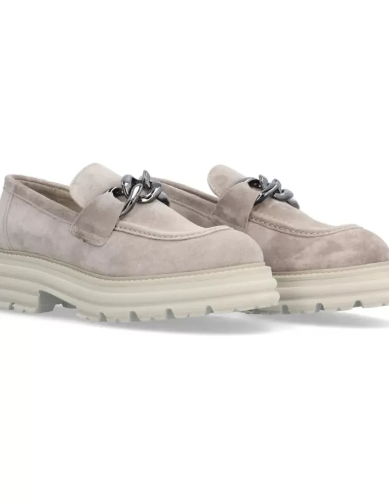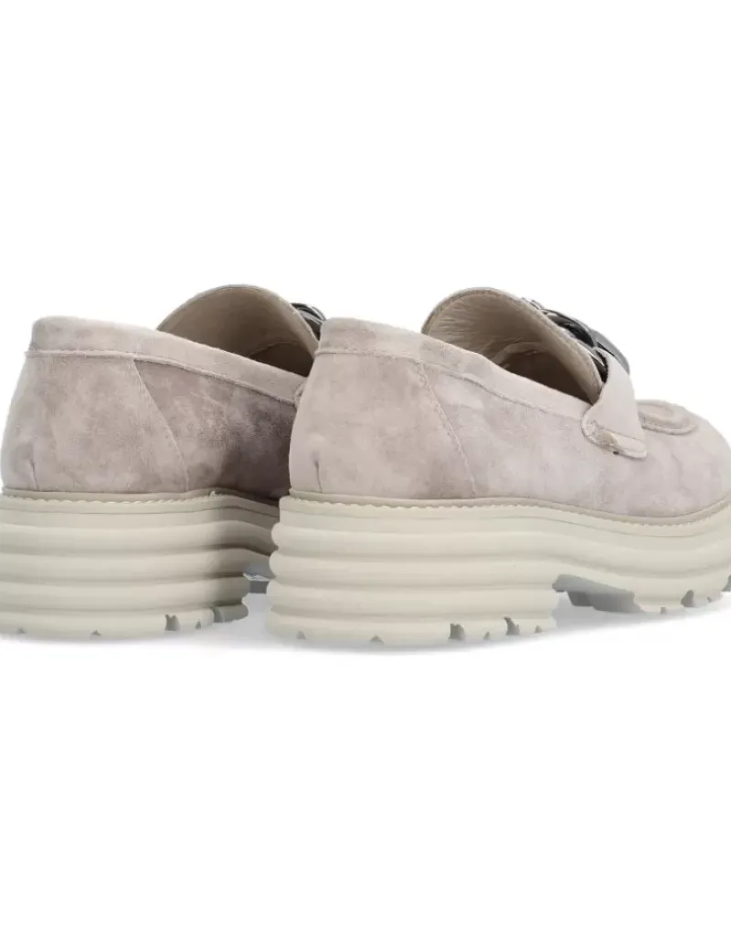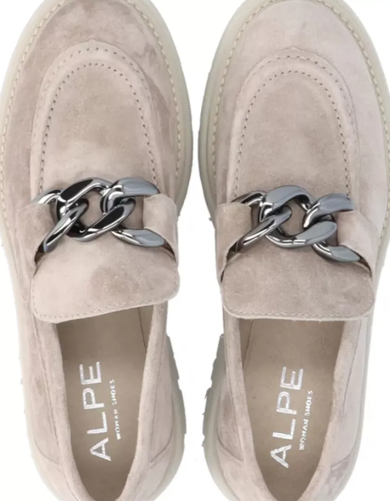 Zapato Para Mujer Alpe Alabama, Fabricado En Piel (Baby Silk) De Color Taupe Con Tacon De 5 Cm, Suela Antideslizante Y Puntera Redonda, Sin Cierre.