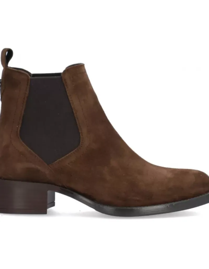 Botin Para Mujer Alpe Alain-2, Fabricado En Piel (Baby Silk) De Color Arabica Con Tacon De 3,5 Cm, Suela Antideslizante Y Puntera Redonda, Sin Cierre Y Cana Baja.