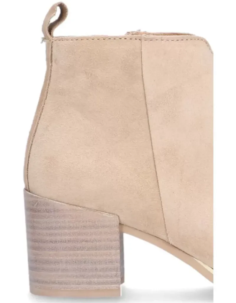 Botin Para Femme Alpe Alba, Fabricado En Piel (Baby Silk) De Color Arena Con Tacon De 6 Cm, Suela Antideslizante Y Puntera Afilada, Con Cierre Mediante Cremallera Y Cana Baja.