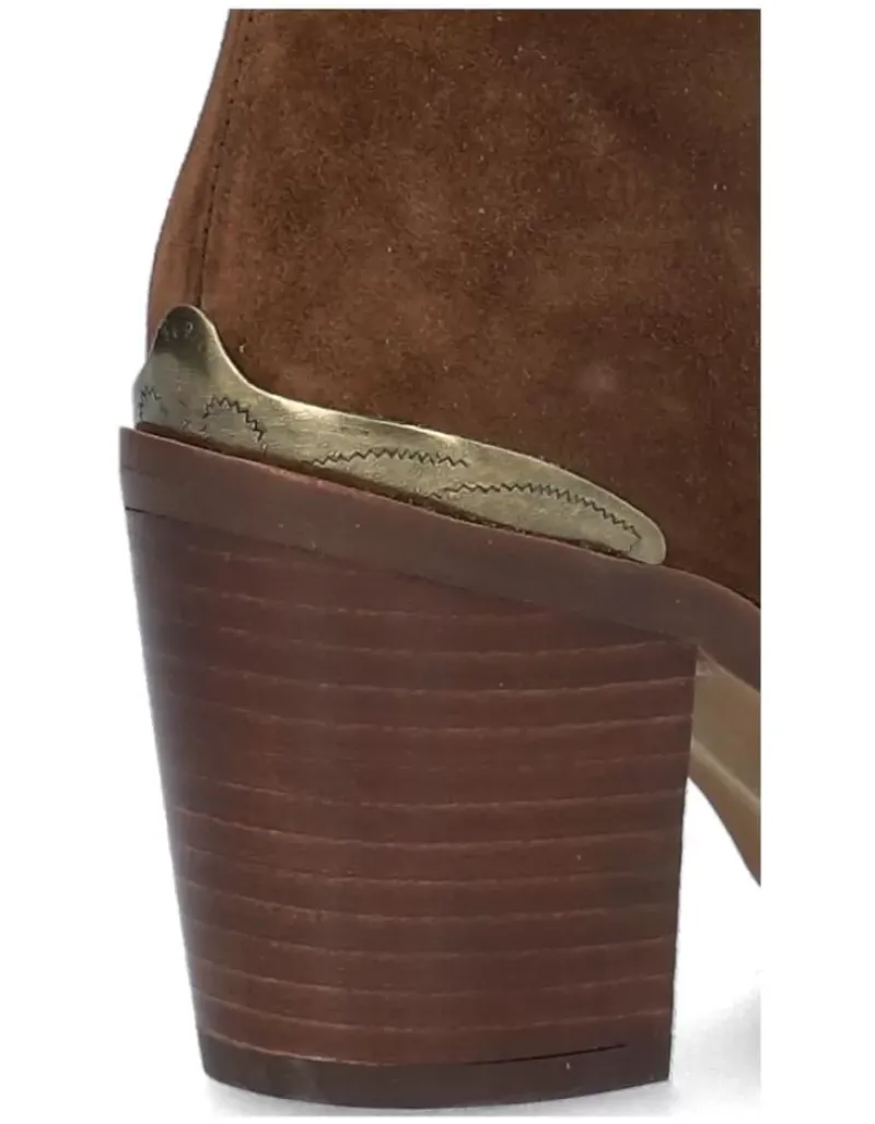 Bota Para Femme Alpe Alina, Fabricada En Piel (Baby Silk) De Color Castaa Con Tacon De 6,5 Cm, Suela Antideslizante Y Puntera Afilada, Con Cierre Mediante Cremallera Y Cana Media.