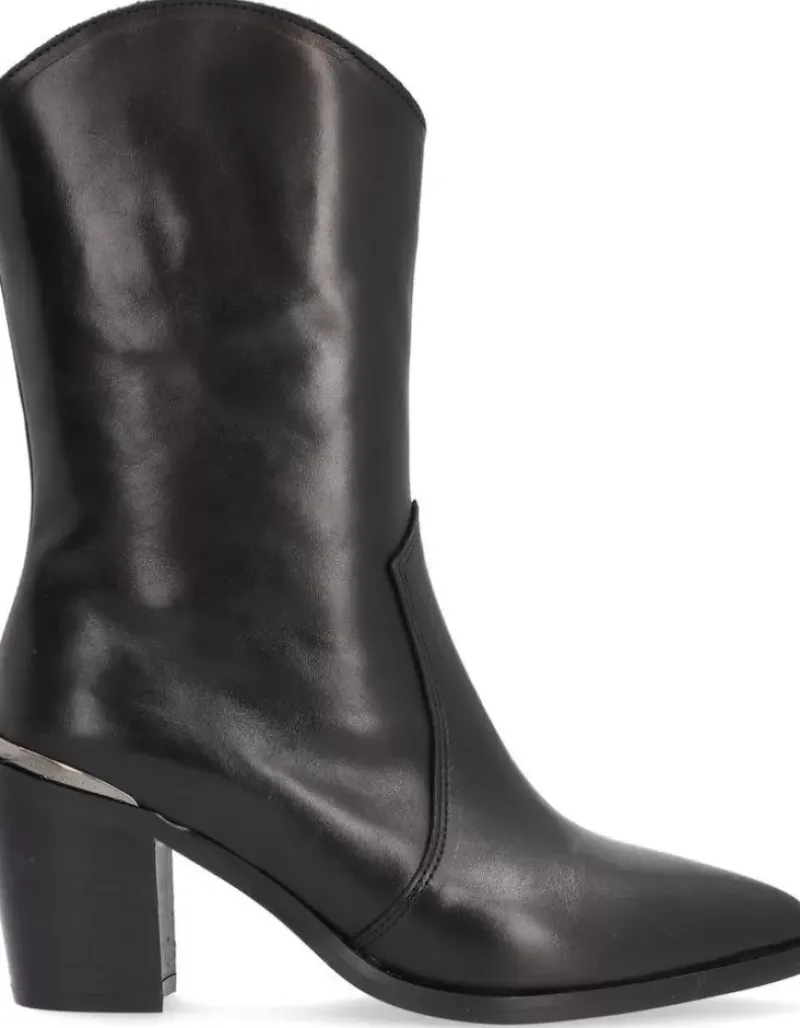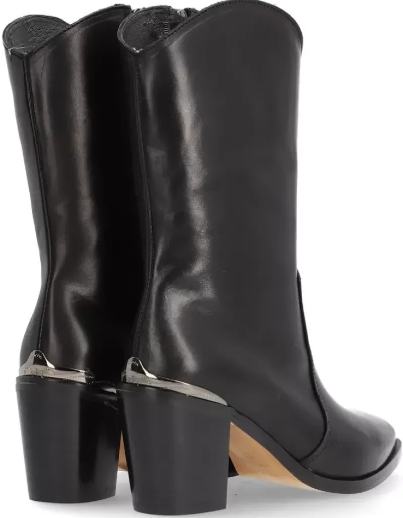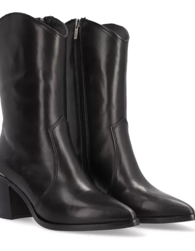 Bota Para Femme Alpe Alina, Fabricada En Piel (Becerro) De Color Negro Con Tacon De 6,5 Cm, Suela Antideslizante Y Puntera Afilada, Con Cierre Mediante Cremallera Y Cana Media.