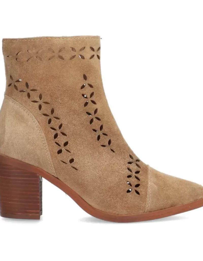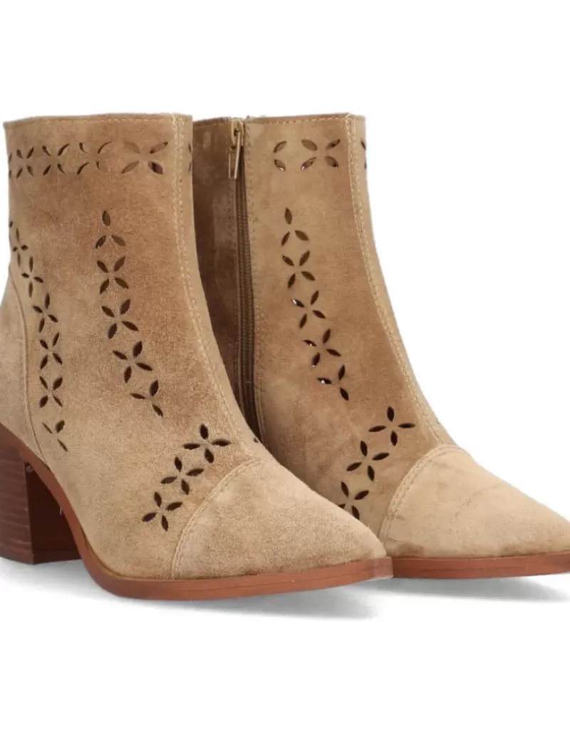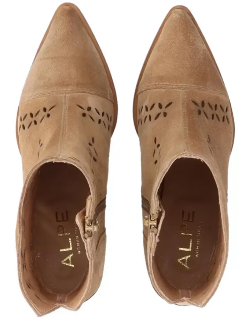 Botin Para Femme Alpe Alina, Fabricado En Piel (Baby Silk) De Color Cuero Con Tacon De 6,5 Cm, Suela Antideslizante Y Puntera Afilada, Con Cierre Mediante Cremallera Y Cana Baja.