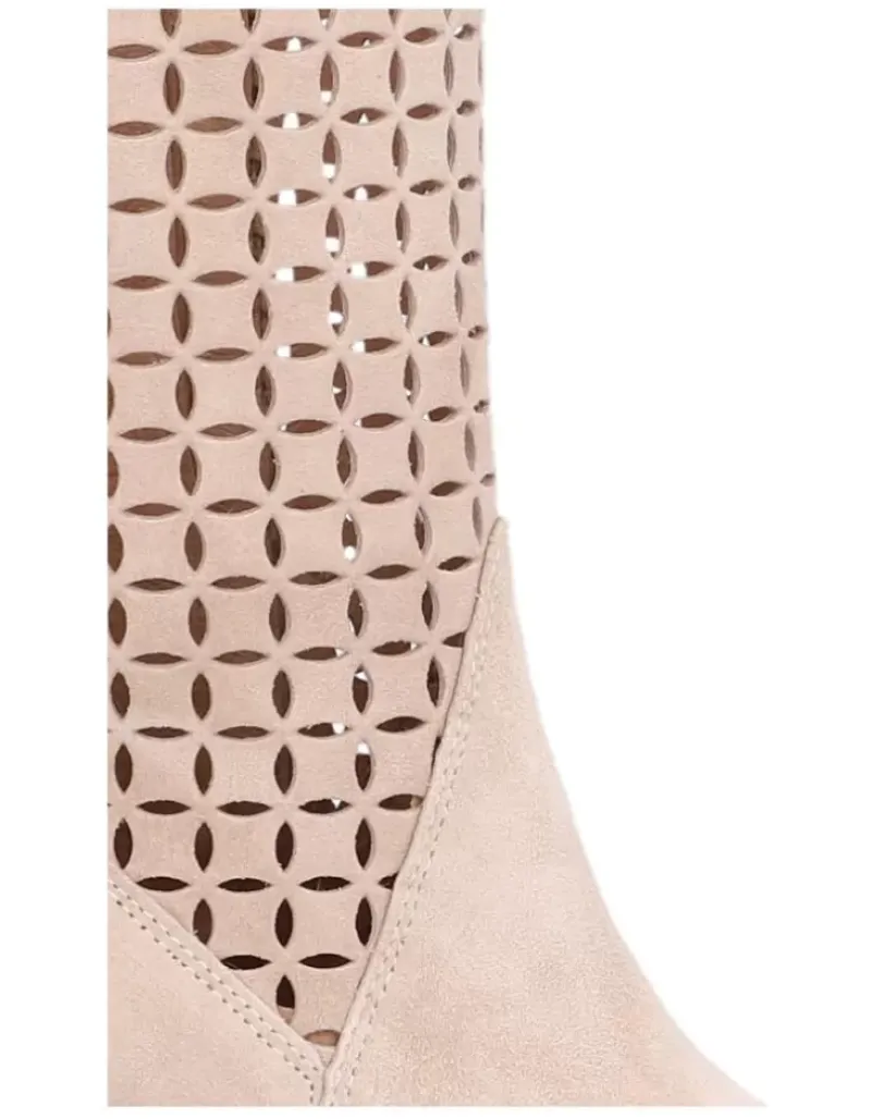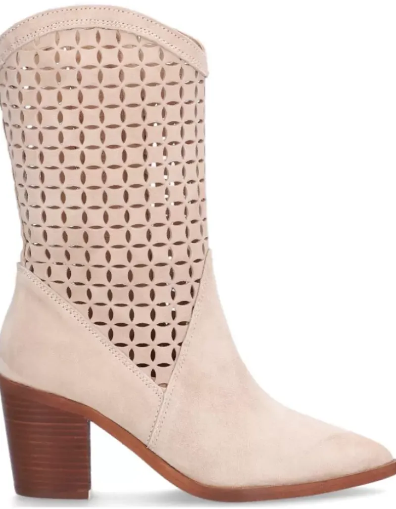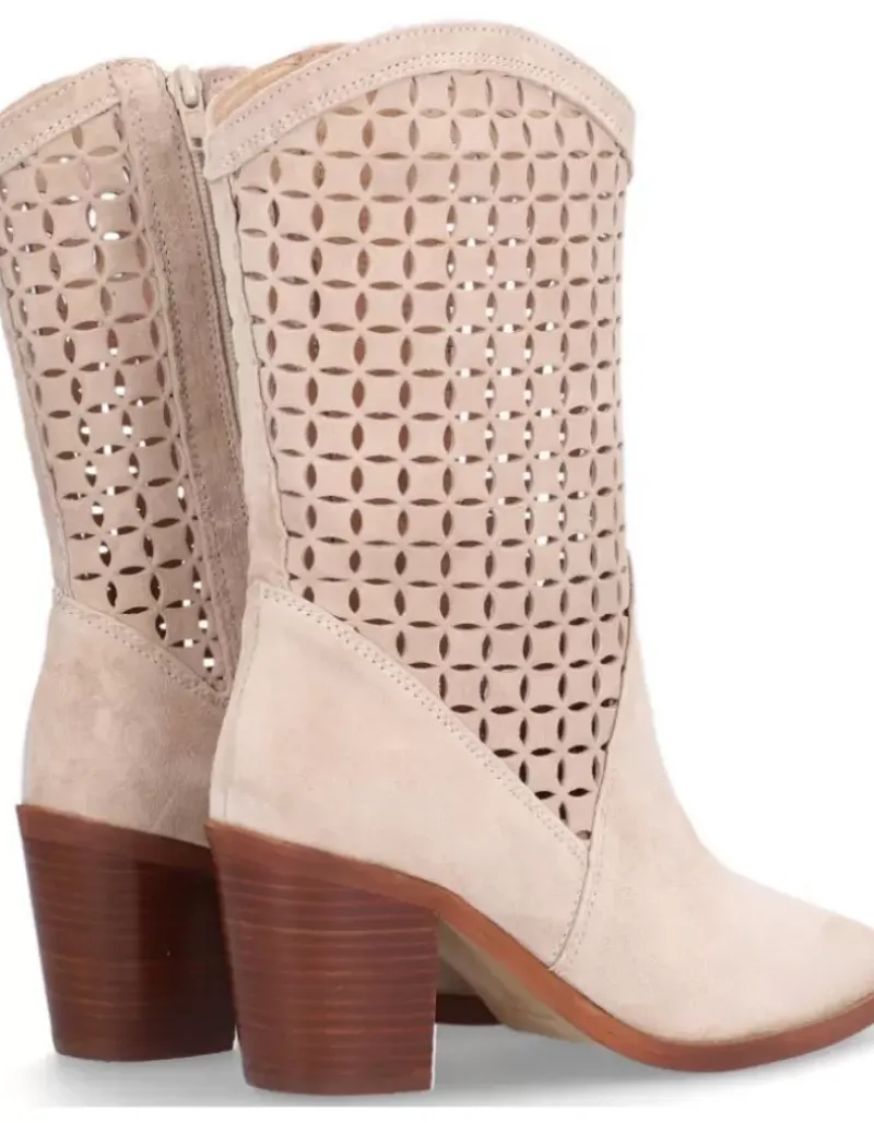 Bota Para Femme Alpe Alina, Fabricada En Piel (Baby Silk) De Color Lino Con Tacon De 6,5 Cm, Suela Antideslizante Y Puntera Afilada, Con Cierre Mediante Cremallera Y Cana Media.