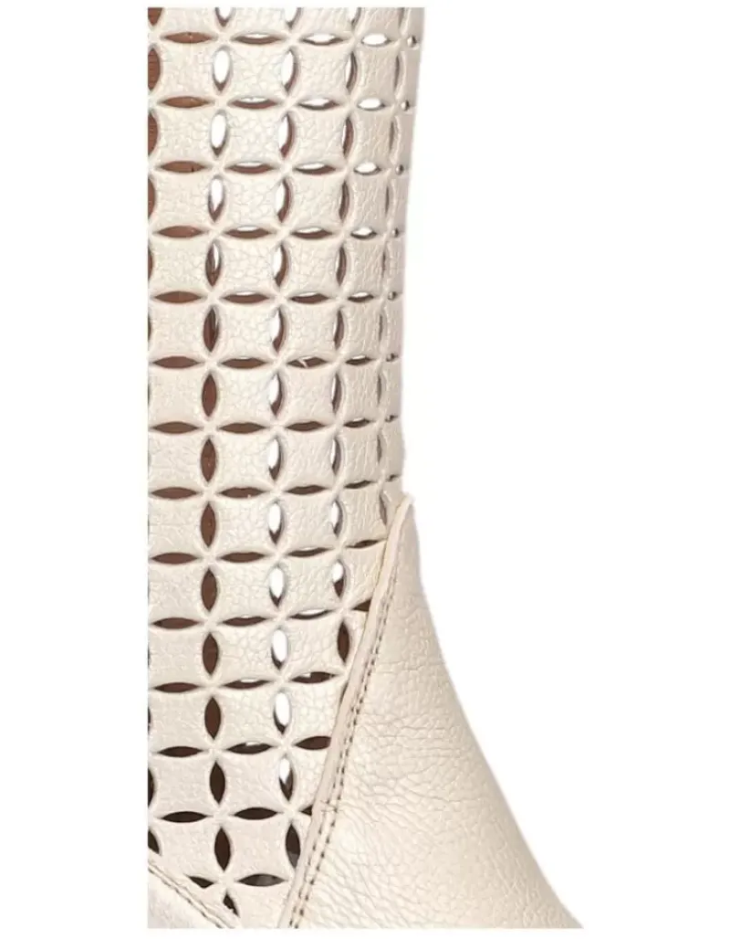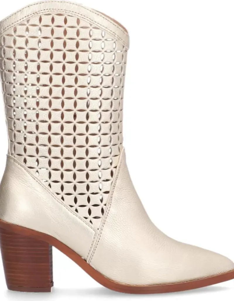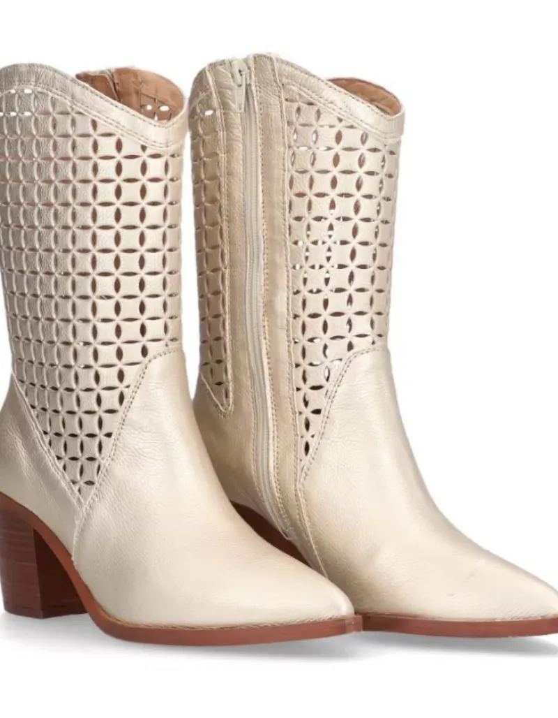 Bota Para Femme Alpe Alina, Fabricada En Piel (Gibson) De Color Platino Con Tacon De 6,5 Cm, Suela Antideslizante Y Puntera Afilada, Con Cierre Mediante Cremallera Y Cana Media.