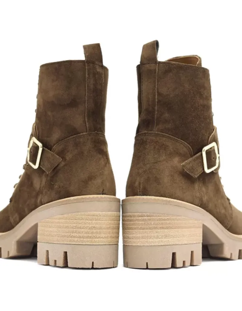 Botin Para Mujer Alpe Amelie, Fabricado En Piel (Baby Silk) De Color Arabica Con Tacon De 6 Cm, Suela Antideslizante Y Puntera Redonda, Con Cierre Mediante Cremallera Y Cana Baja.