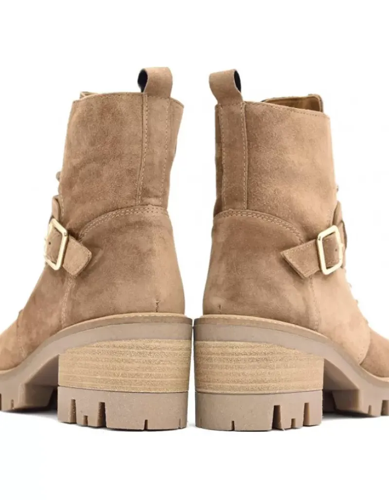 Botin Para Femme Alpe Amelie, Fabricado En Piel (Baby Silk) De Color Bryce Con Tacon De 6 Cm, Suela Antideslizante Y Puntera Redonda, Con Cierre Mediante Cremallera Y Cana Baja.
