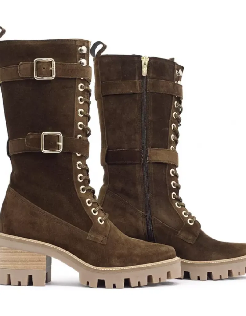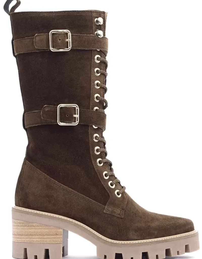 Bota Para Mujer Alpe Amelie, Fabricada En Piel (Baby Silk) De Color Arabica Con Tacon De 6 Cm, Suela Antideslizante Y Puntera Redonda, Con Cierre Mediante Cremallera Y Cana Alta.
