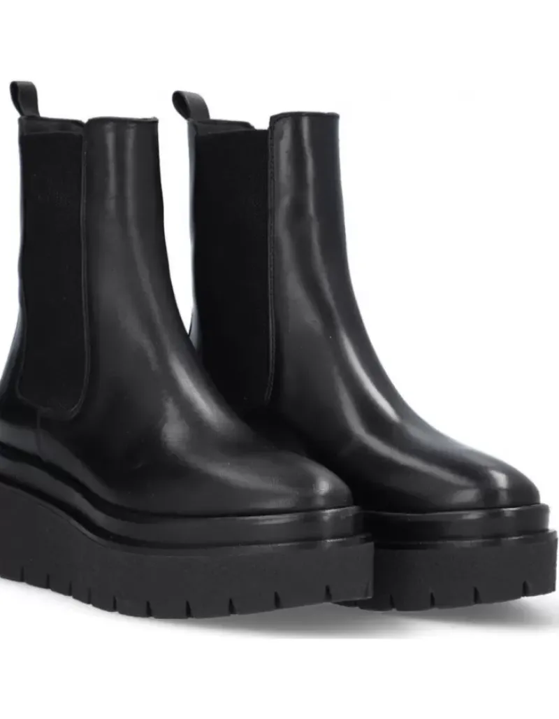 Bota Para Femme Alpe Amiri, Fabricada En Piel (Becerro) De Color Negro Con Plataforma De 5 Cm, Suela Antideslizante Y Puntera Redonda, Sin Cierre Y Cana Baja.