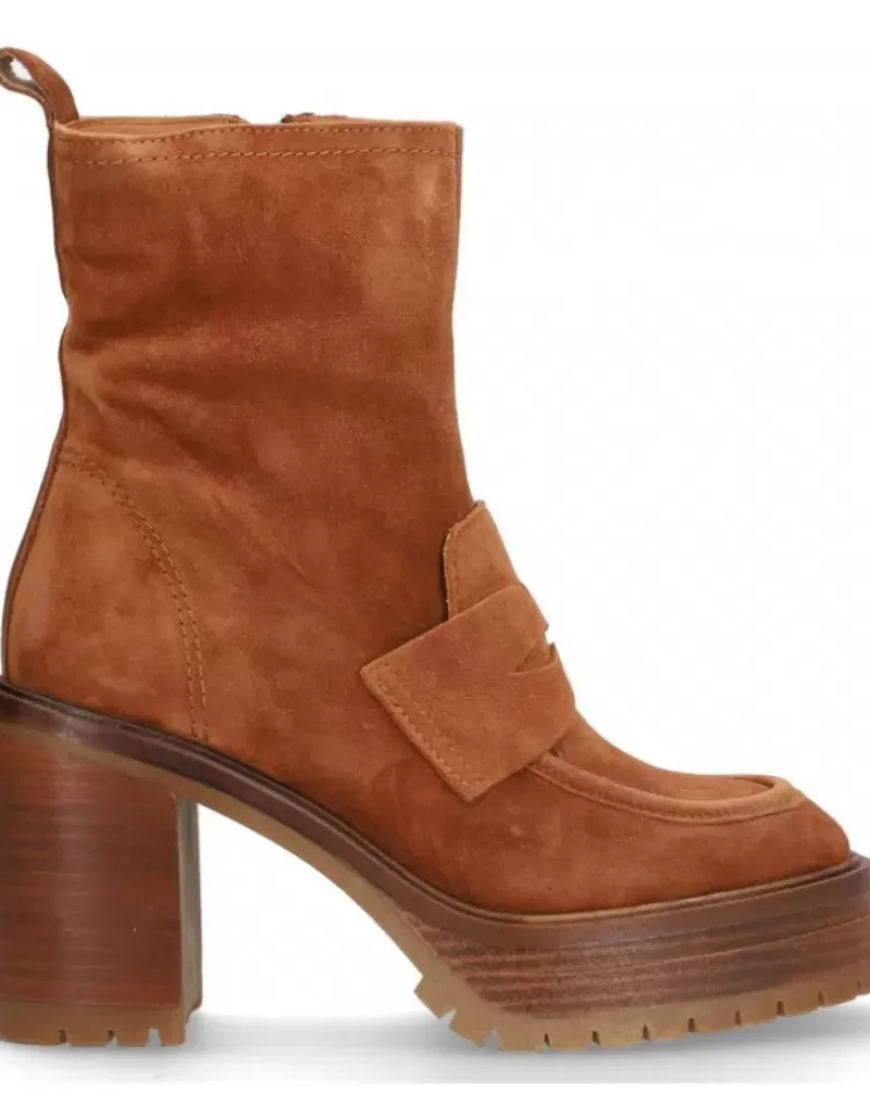 Botin Para Femme Alpe Anima, Fabricado En Piel (Baby Silk) De Color Sella Con Tacon De 8,5 Cm, Suela Antideslizante Y Puntera Redonda, Con Cierre Mediante Cremallera Y Cana Baja.