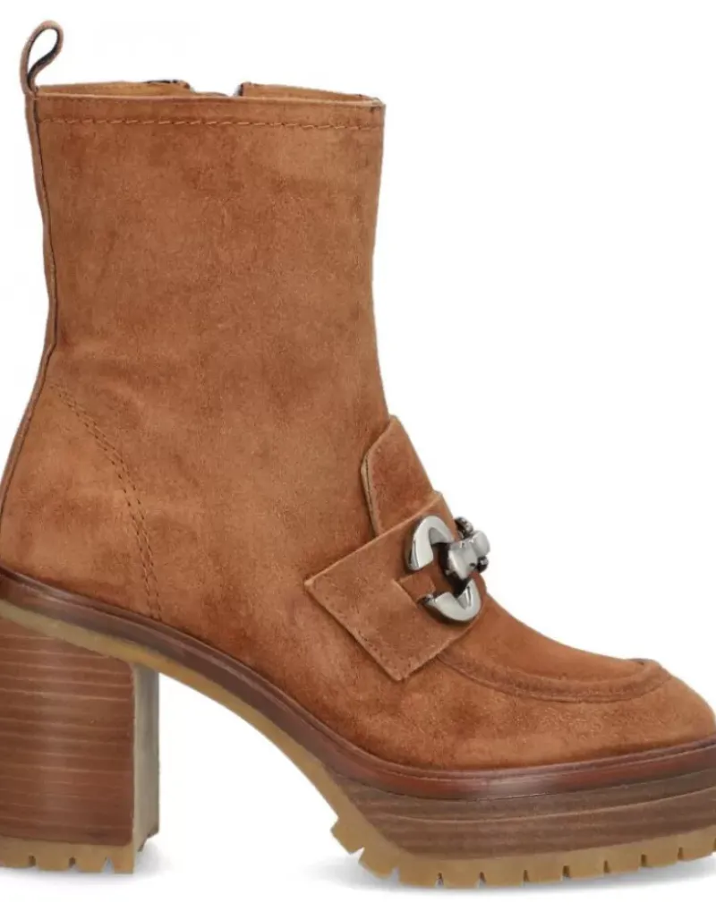 Botin Para Femme Alpe Anima, Fabricado En Piel (Baby Silk) De Color Sella Con Tacon De 8,5 Cm, Suela Antideslizante Y Puntera Redonda, Con Cierre Mediante Cremallera Y Cana Baja.