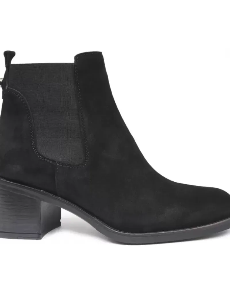 Botin Para Femme Alpe Anne, Fabricado En Piel (Baby Silk) De Color Negro Con Tacon De 5,5 Cm, Suela Antideslizante Y Puntera Redonda, Sin Cierre Y Cana Baja.