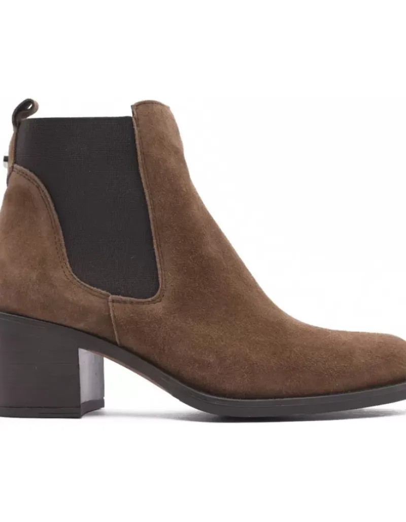 Botin Para Femme Alpe Anne, Fabricado En Piel (Baby Silk) De Color Arabica Con Tacon De 5,5 Cm, Suela Antideslizante Y Puntera Redonda, Sin Cierre Y Cana Baja.