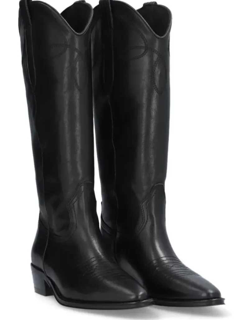 Bota Para Femme Alpe Cecile, Fabricada En Piel (Sagar) De Color Negro Con Tacon De 5 Cm, Suela Antideslizante Y Puntera Afilada, Sin Cierre Y Cana Alta.