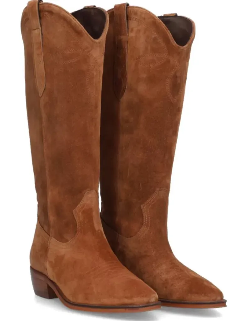 Bota Para Femme Alpe Cecile, Fabricada En Piel (Baby Silk) De Color Sella Con Tacon De 5 Cm, Suela Antideslizante Y Puntera Afilada, Sin Cierre Y Cana Alta.