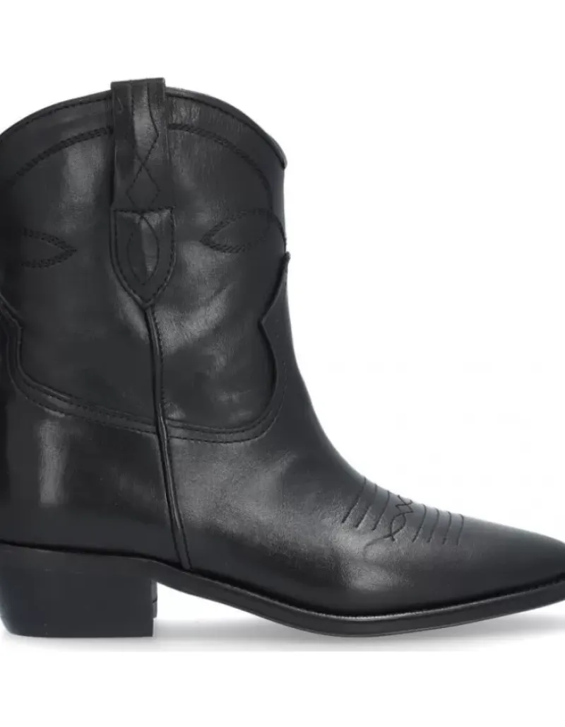 Botin Para Femme Alpe Cecile, Fabricado En Piel (Sagar) De Color Negro Con Tacon De 5 Cm, Suela Antideslizante Y Puntera Afilada, Sin Cierre Y Cana Baja.