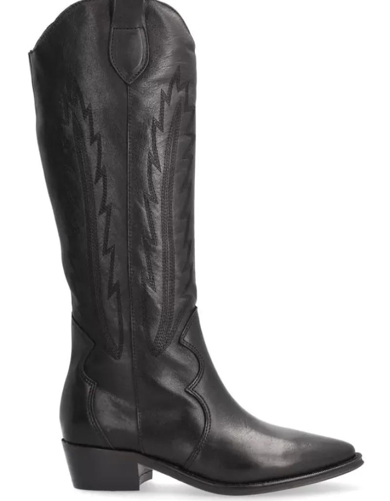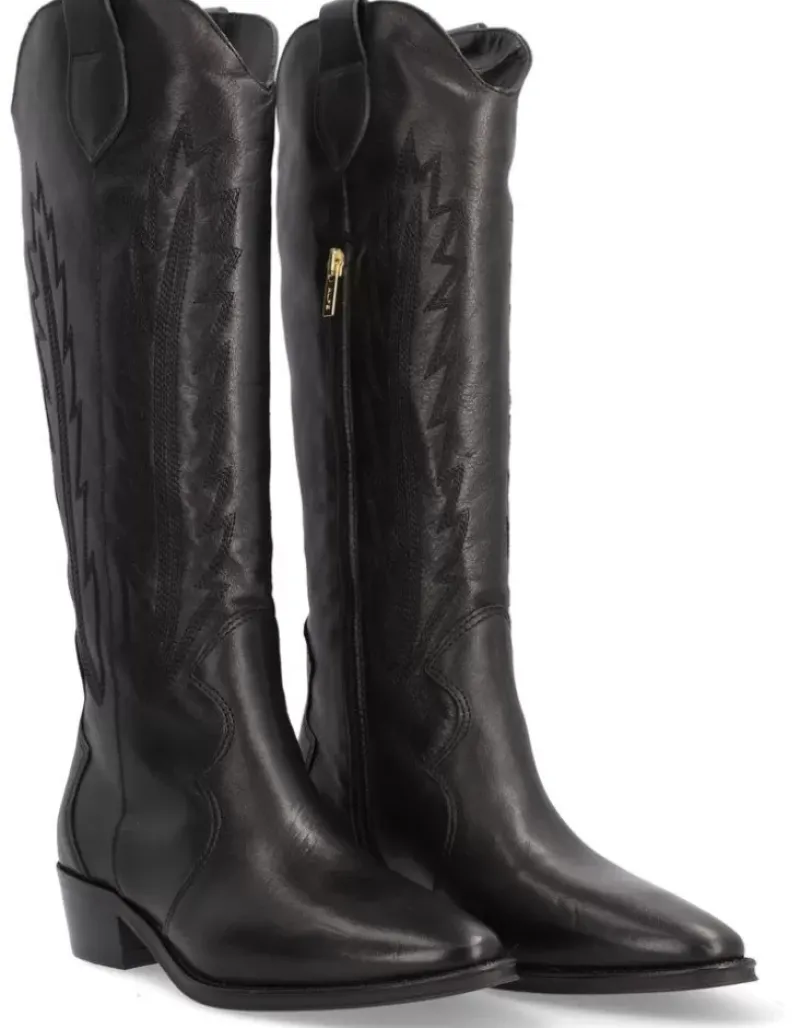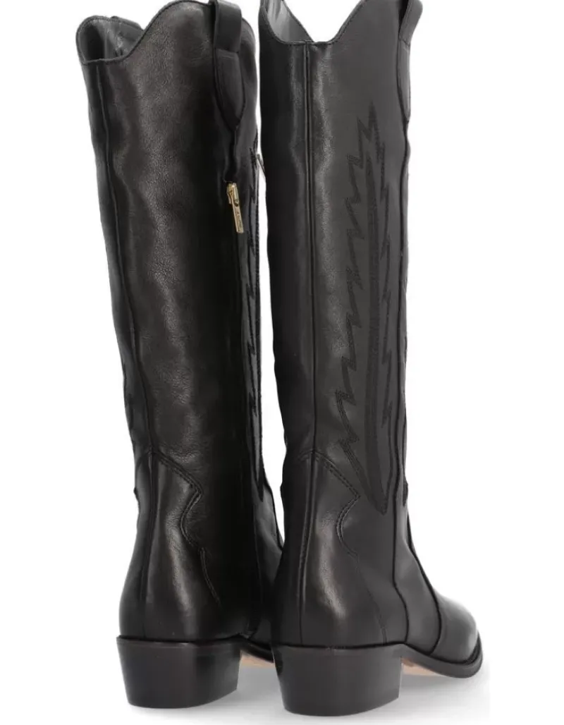 Bota Para Mujer Alpe Cecile, Fabricada En Piel (Sagar) De Color Negro Con Tacon De 4 Cm, Suela Antideslizante Y Puntera Afilada, Con Cierre Mediante Cremallera Y Cana Alta.