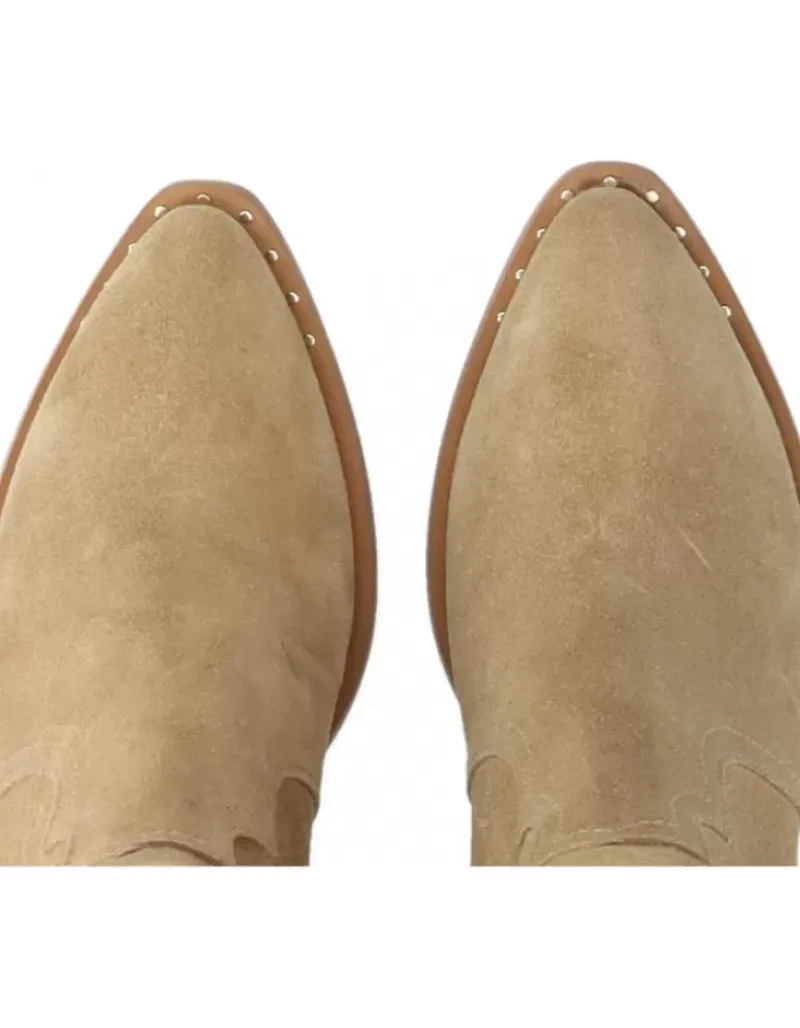 Botin Para Femme Alpe Claire, Fabricado En Piel (Baby Silk) De Color Tabaco Con Tacon De 5 Cm, Suela Antideslizante Y Puntera Afilada, Con Cierre Mediante Cremallera Y Cana Baja.