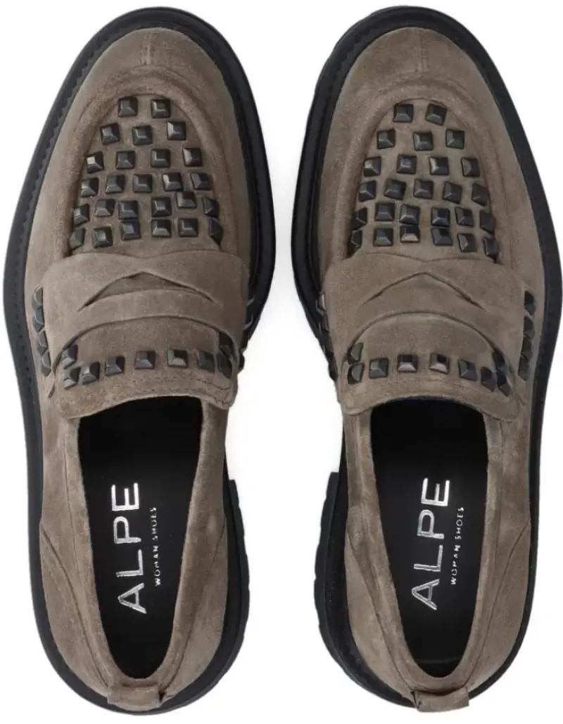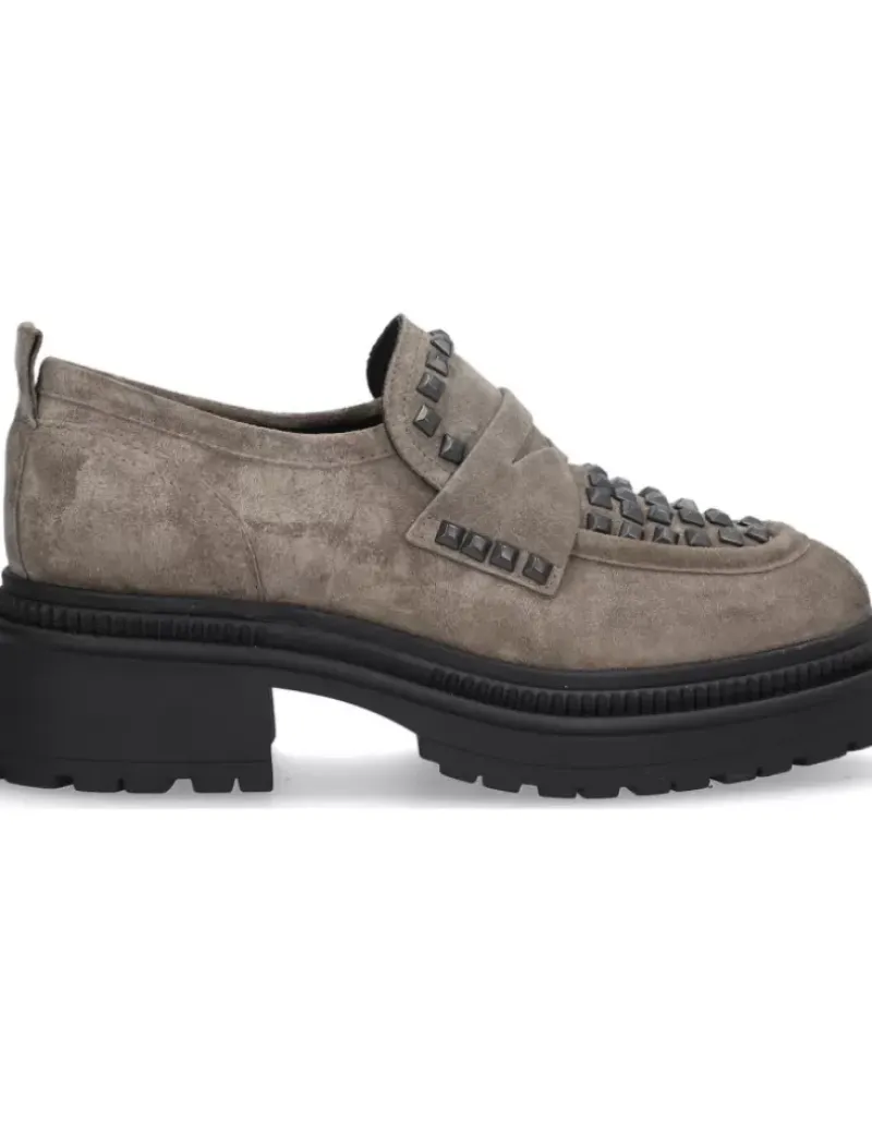 Zapato Para Femme Alpe Clay, Fabricado En Piel (Baby Silk) De Color Taiga Con Tacon De 5 Cm, Suela Antideslizante Y Puntera Redonda, Sin Cierre.