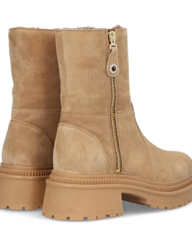 Bota Para Femme Alpe Clay, Fabricada En Piel (Baby Silk) De Color Camel Con Tacon De 5 Cm, Suela Antideslizante Y Puntera Redonda, Con Cierre Mediante Cremallera Y Cana Baja.