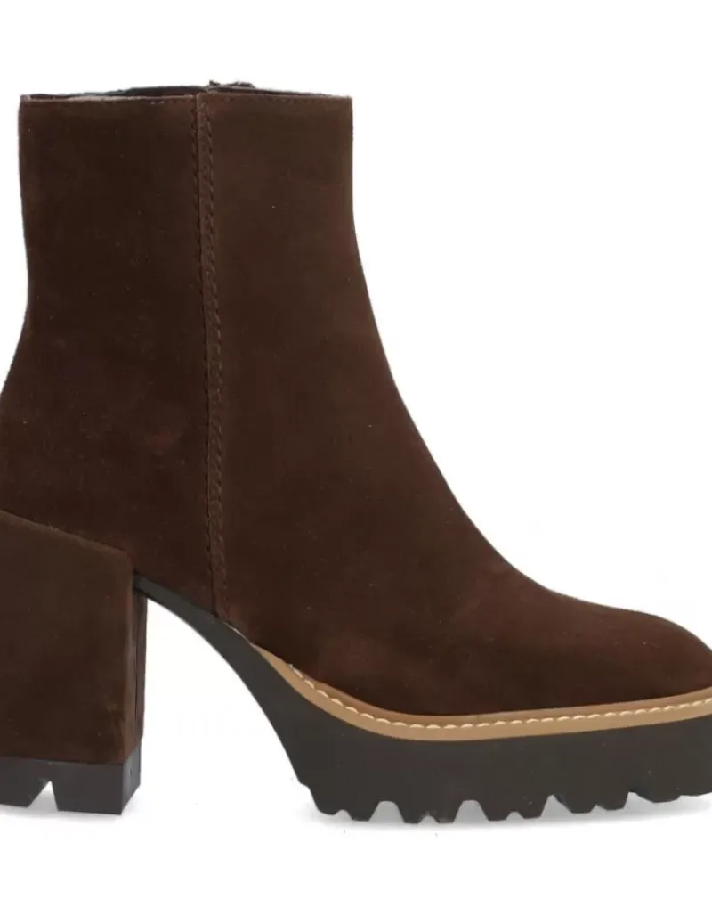 Botin Para Femme Alpe Colette, Fabricado En Piel (Baby Silk) De Color Arabica Con Tacon De 7 Cm, Suela Antideslizante Y Puntera Redonda, Con Cierre Mediante Cremallera Baja.