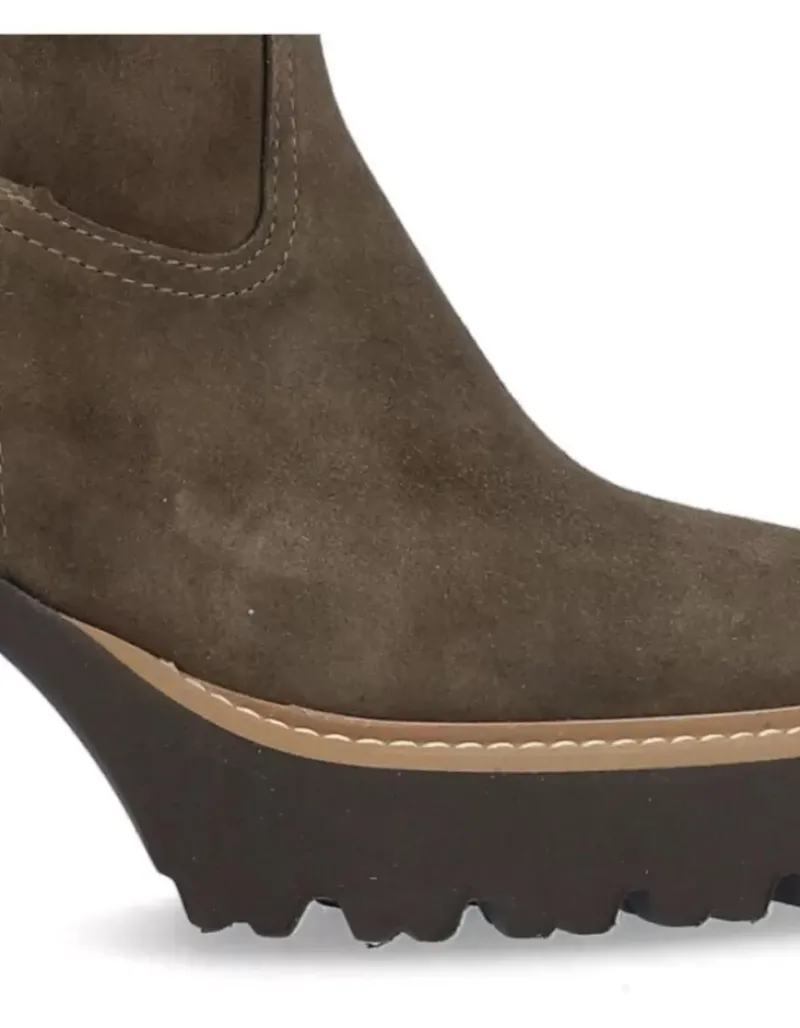 Bota Para Femme Alpe Colette, Fabricada En Piel (Baby Silk) De Color Kaki Con Tacon De 7 Cm, Suela Antideslizante Y Puntera Redonda, Con Cierre Mediante Cremallera Y Cana Alta.