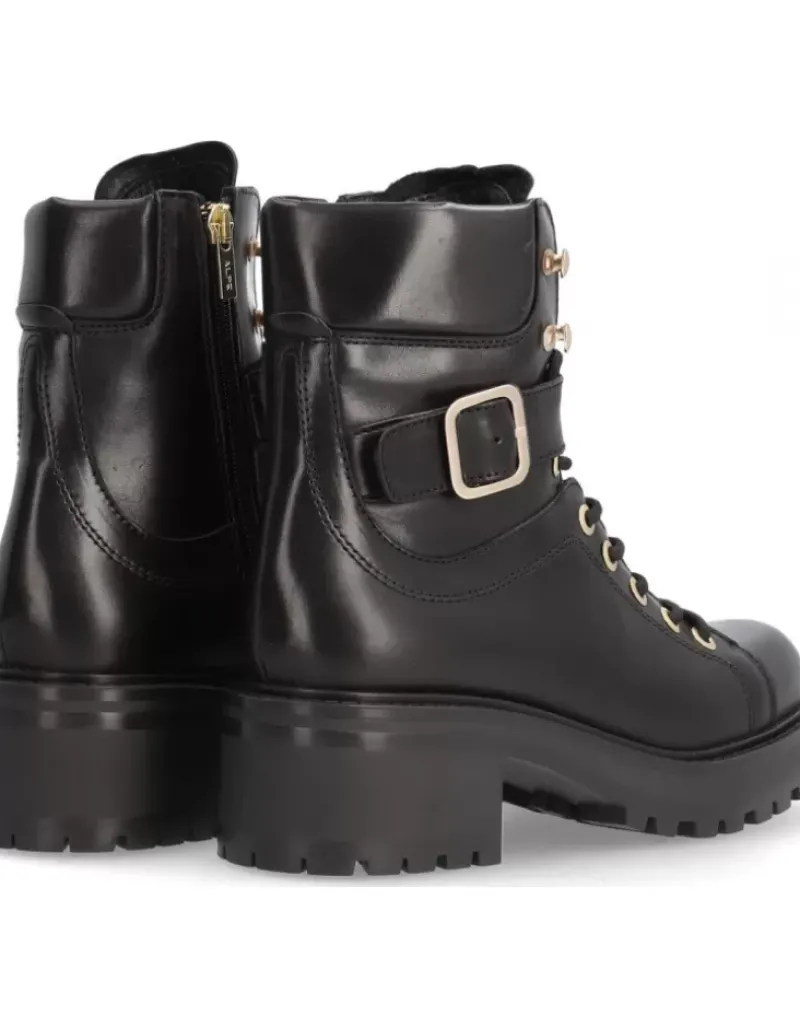 Bota Para Mujer Alpe Cool, Fabricada En Piel (Becerro) De Color Negro Con Tacon De 5 Cm, Suela Antideslizante Y Puntera Redonda, Con Cierre Mediante Cordon Y Cana Media.