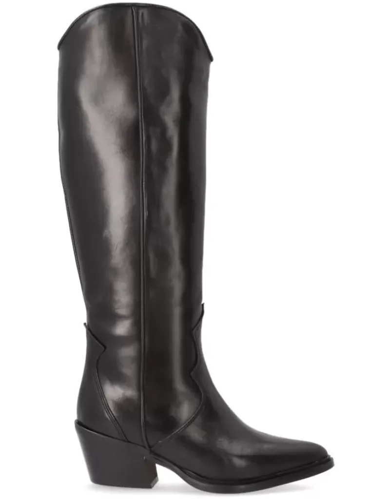 Bota Para Mujer Alpe Country, Fabricada En Piel (Becerro) De Color Negro Con Tacon De 5 Cm, Suela Antideslizante Y Puntera Afilada, Con Cierre Mediante Cremallera Y Cana Alta.