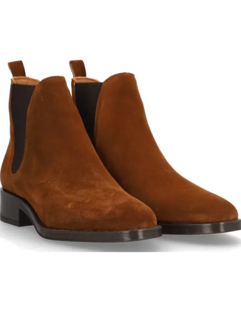 Botin Para Femme Alpe Couture, Fabricado En Piel (Baby Silk) De Color Cuero Con Tacon De 6 Cm, Suela Antideslizante Y Puntera Redonda, Sin Cierre Y Cana Baja.