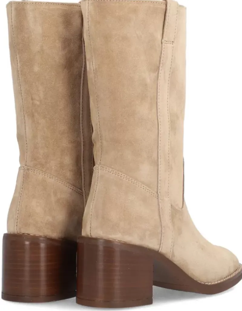 Bota Para Mujer Alpe Covent, Fabricada En Piel (Baby Silk) De Color Noisette Con Tacon De 6,5 Cm, Suela Antideslizante Y Puntera Redonda, Sin Cierre Y Cana Media.