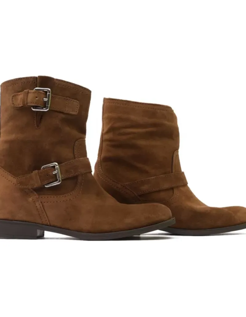 Botin Para Femme Alpe Diva, Fabricado En Piel (Baby Silk) De Color Cuero Con Tacon De 3 Cm, Suela Antideslizante Y Puntera Redonda, Sin Cierre Baja.
