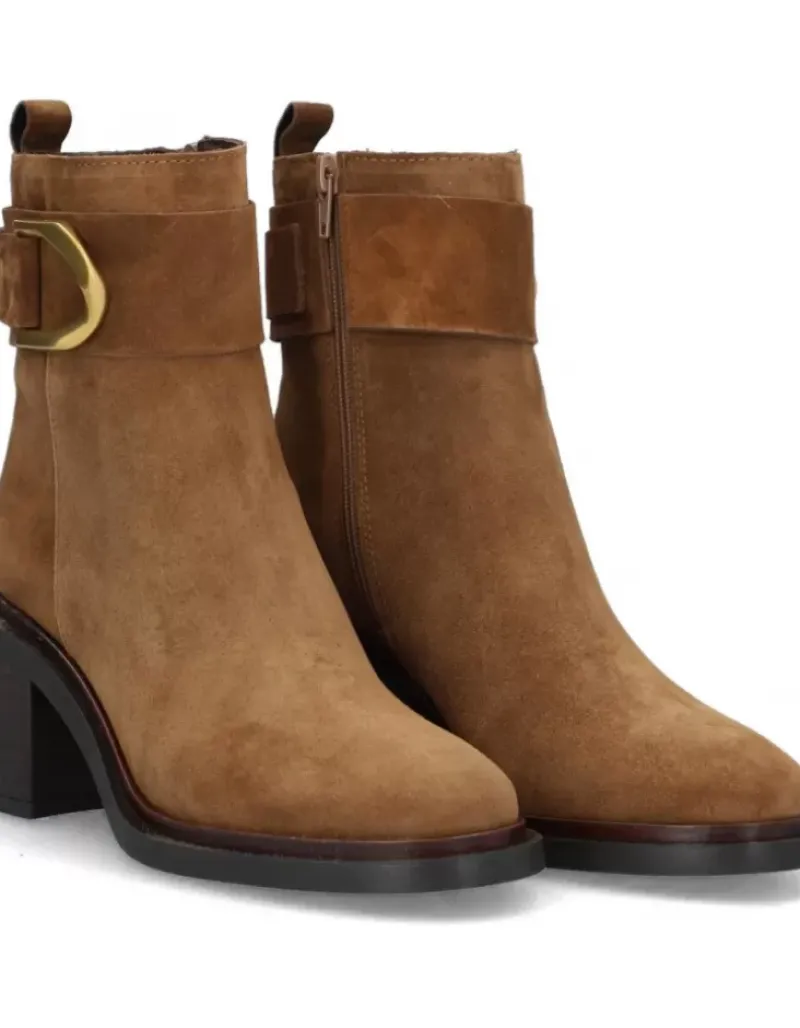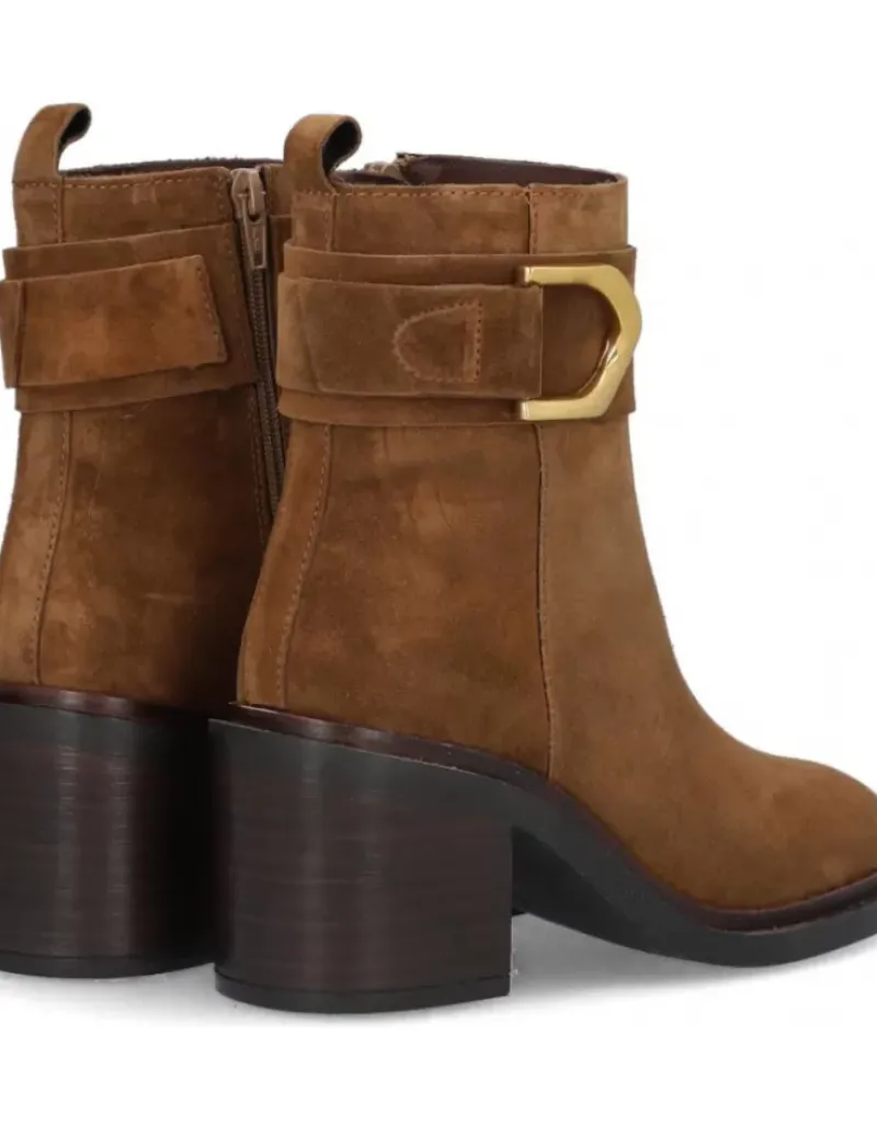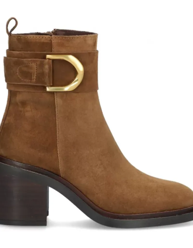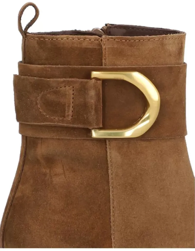 Botin Para Femme Alpe Evolet, Fabricado En Piel (Baby Silk) De Color Cuero Con Tacon De 6,5 Cm, Suela Antideslizante Y Puntera Redonda, Con Cierre Mediante Cremallera Y Cana Baja.