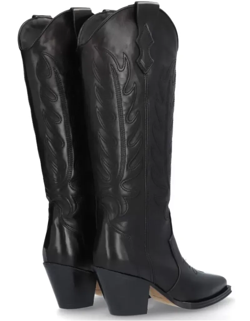 Bota Para Femme Alpe Givet, Fabricada En Piel (Becerro) De Color Negro Con Tacon De 5,5 Cm, Suela Antideslizante Y Puntera Afilada, Sin Cierre Y Cana Alta.