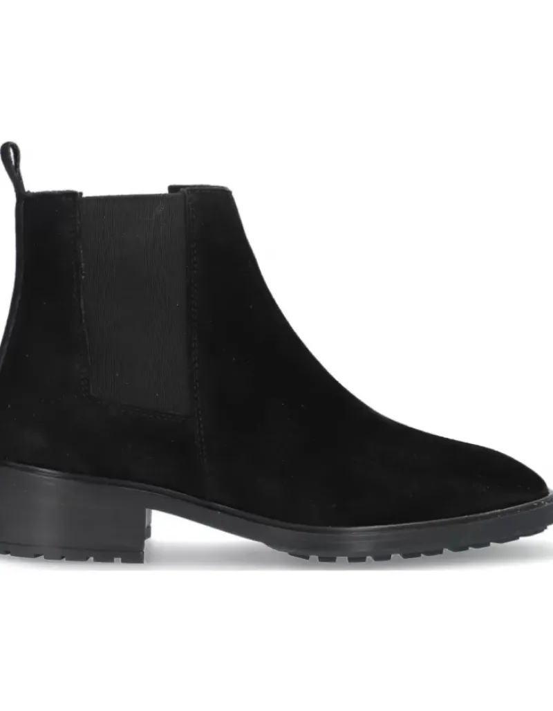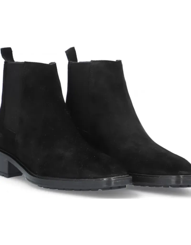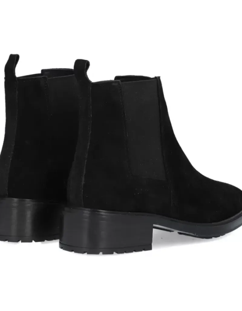 Botin Para Femme Alpe Idaho, Fabricado En Piel (Baby Silk) De Color Negro Con Tacon De 6 Cm, Suela Antideslizante Y Puntera Redonda, Sin Cierre Y Cana Baja.