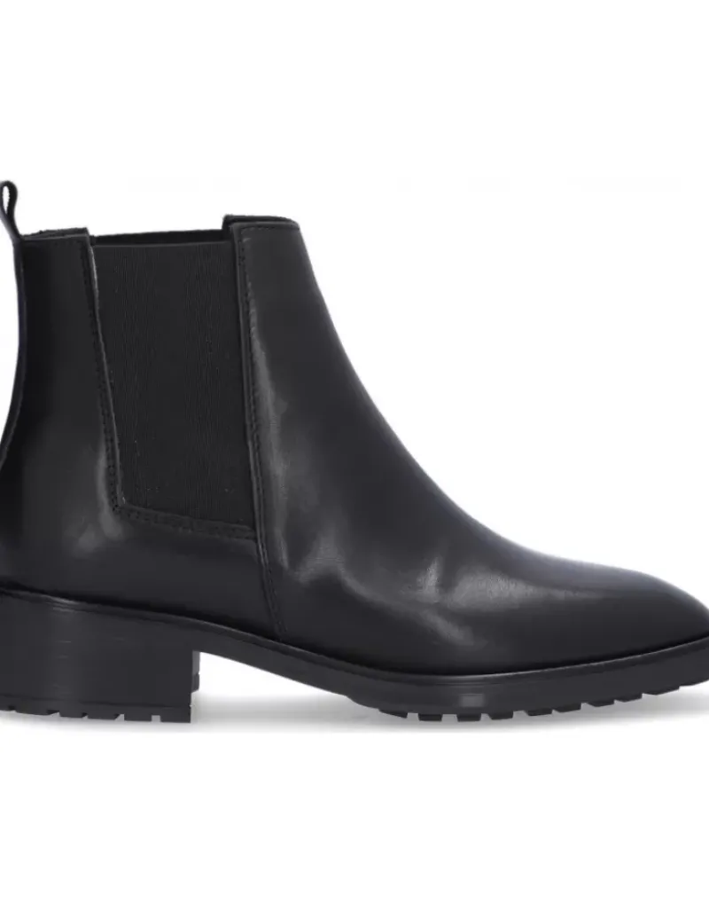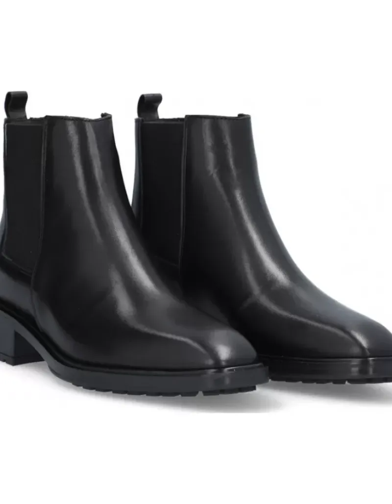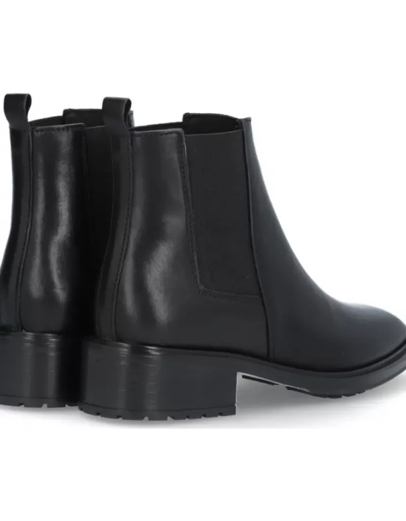 Botin Para Femme Alpe Idaho, Fabricado En Piel (Becerro) De Color Negro Con Tacon De 6 Cm, Suela Antideslizante Y Puntera Redonda, Sin Cierre Y Cana Baja.