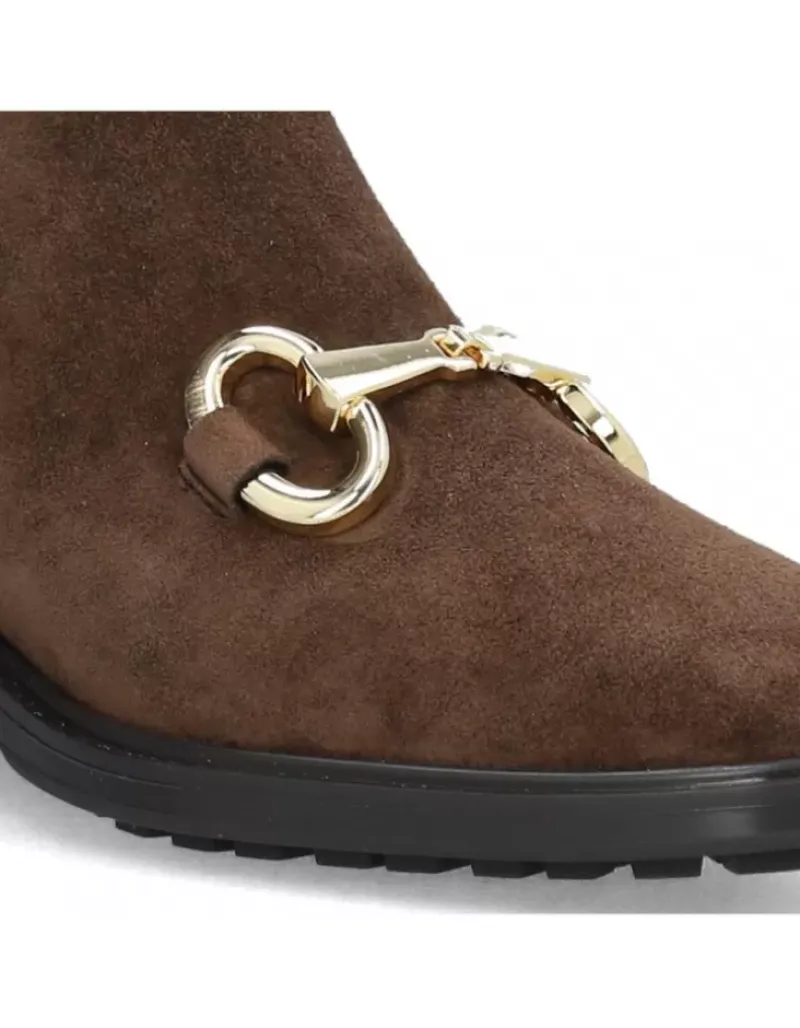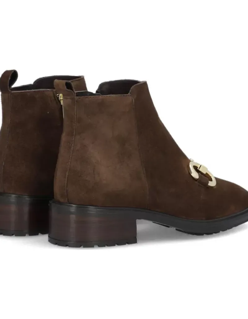 Botin Para Femme Alpe Idaho, Fabricado En Piel (Baby Silk) De Color Arabica Con Tacon De 6 Cm, Suela Antideslizante Y Puntera Redonda, Con Cierre Mediante Cremallera Y Cana Baja.