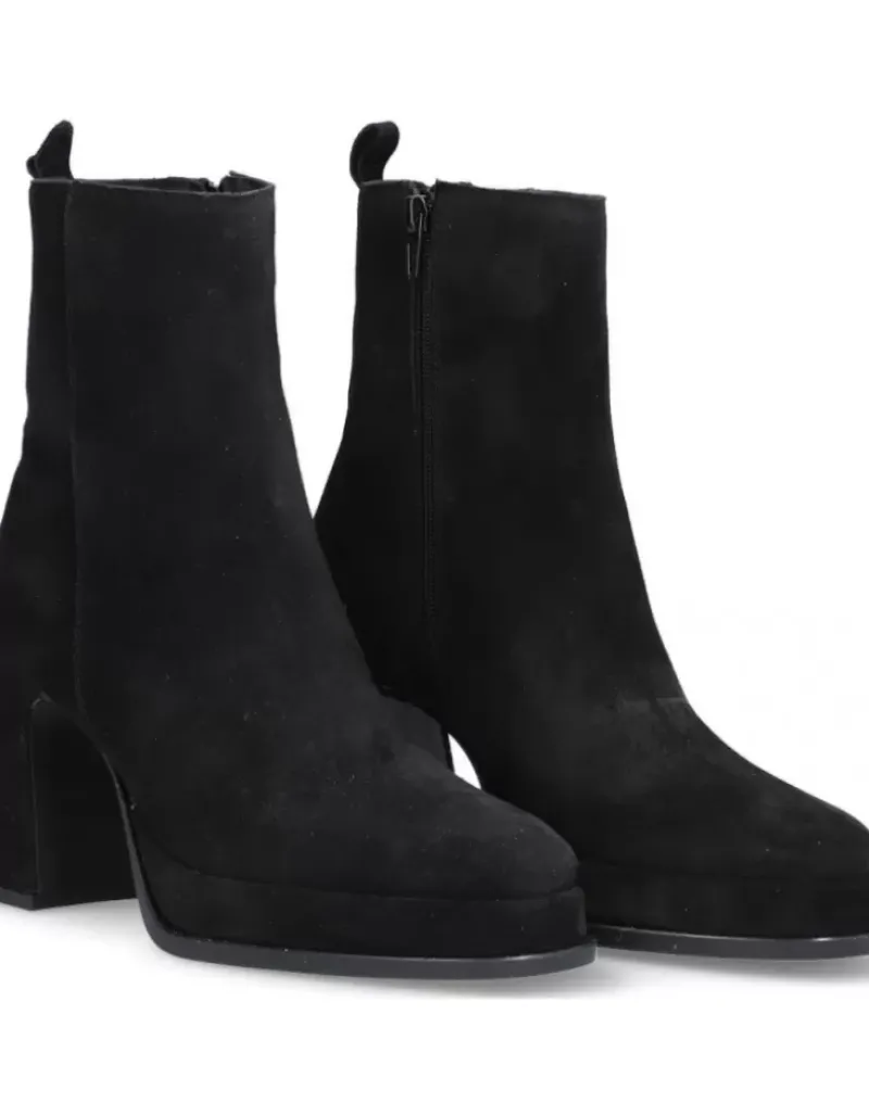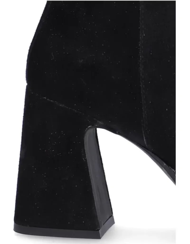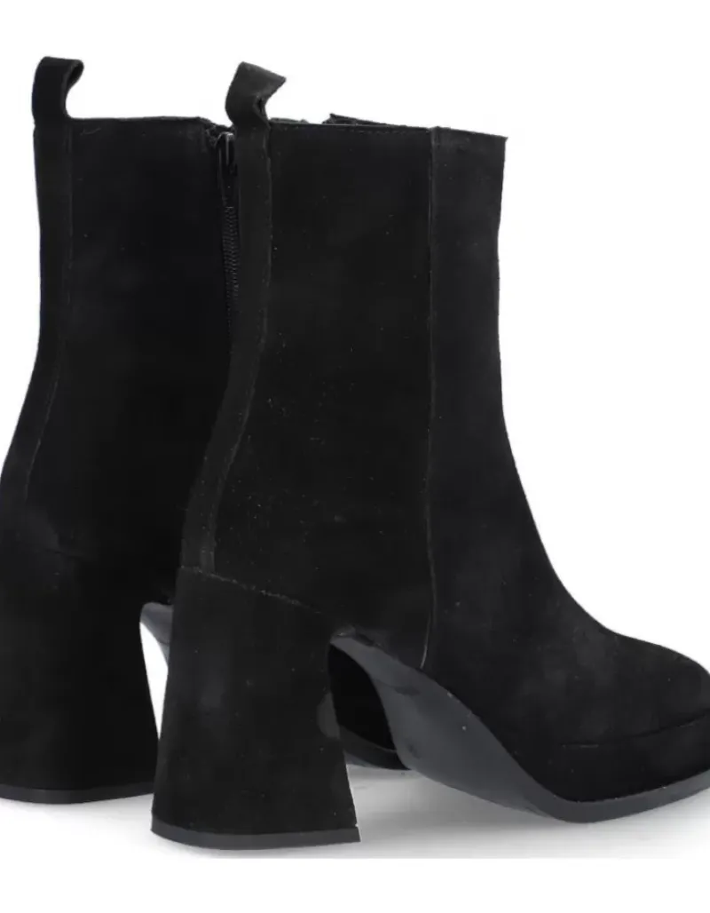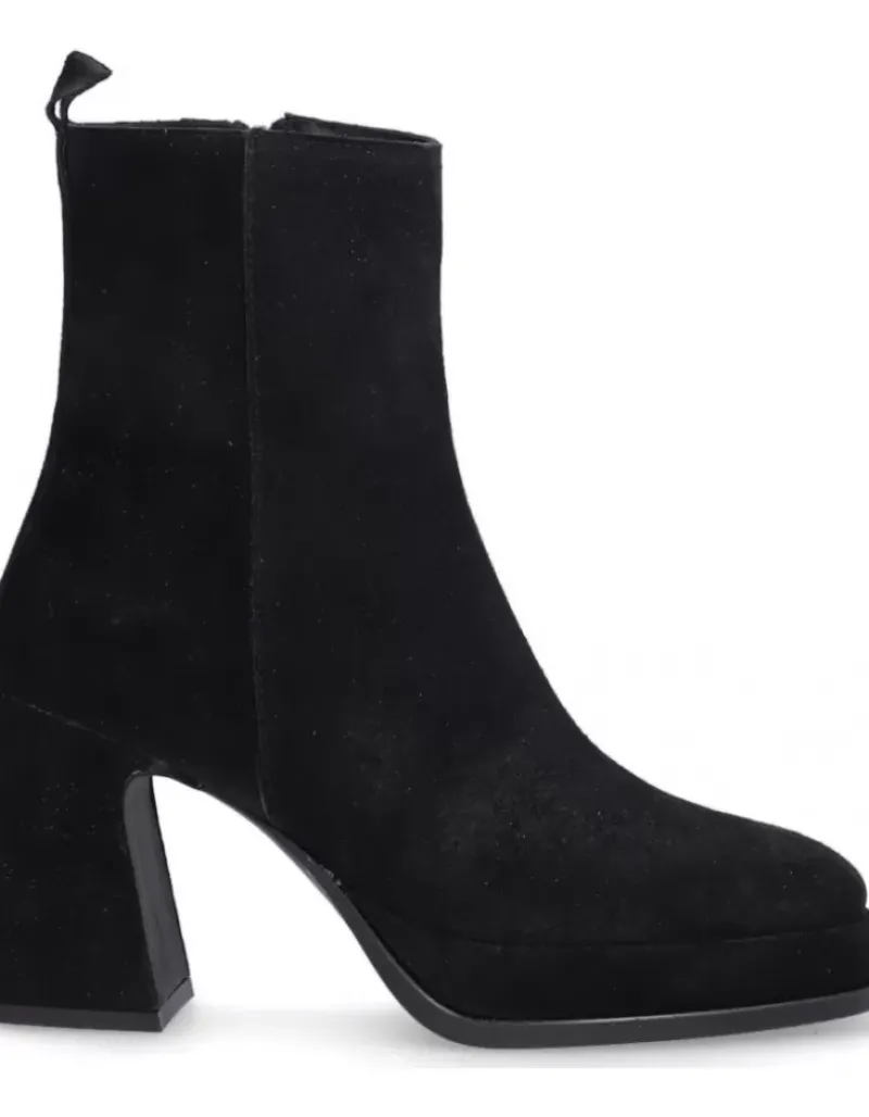 Botin Para Femme Alpe Idanna, Fabricado En Piel (Baby Silk) De Color Negro Con Tacon De 8,5 Cm, Suela Antideslizante Y Puntera Cuadrada, Con Cierre Mediante Cremallera Y Cana Baja.