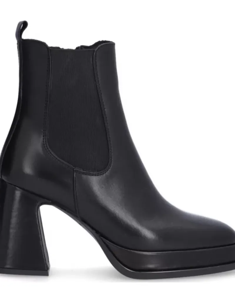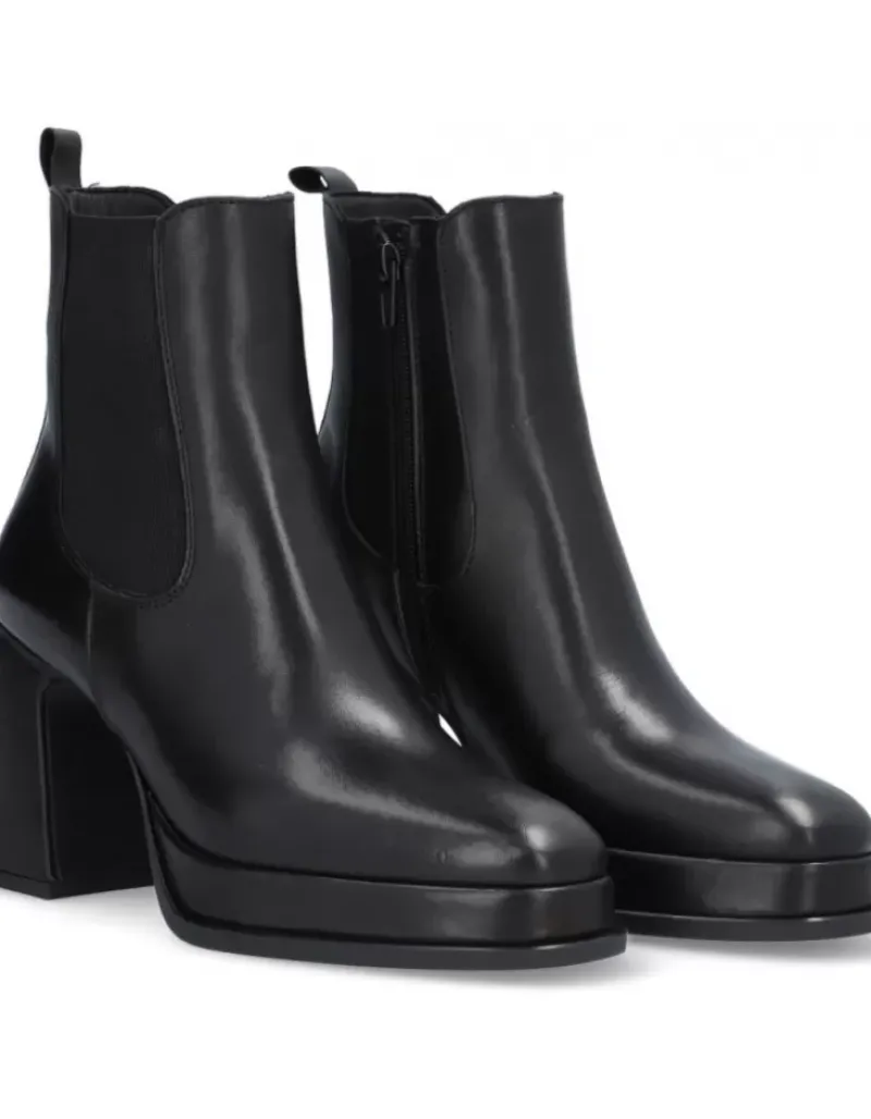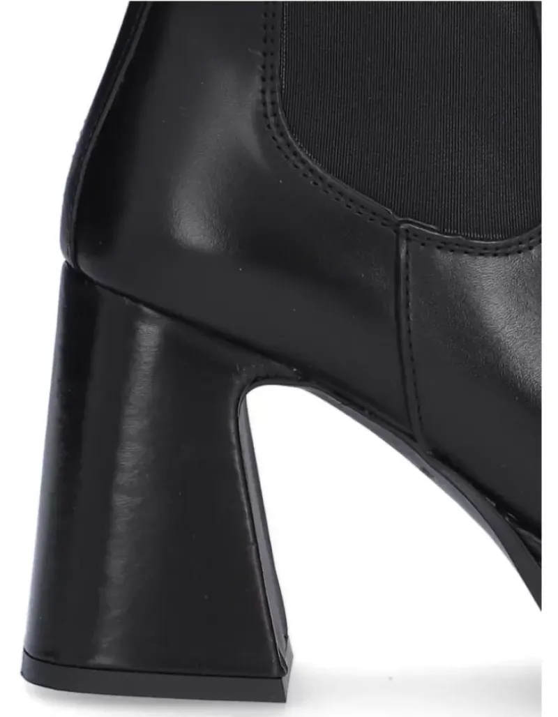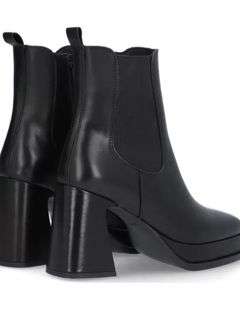 Botin Para Femme Alpe Idanna, Fabricado En Piel (Becerro) De Color Negro Con Tacon De 8,5 Cm, Suela Antideslizante Y Puntera Cuadrada, Con Cierre Mediante Cremallera Y Cana Baja.