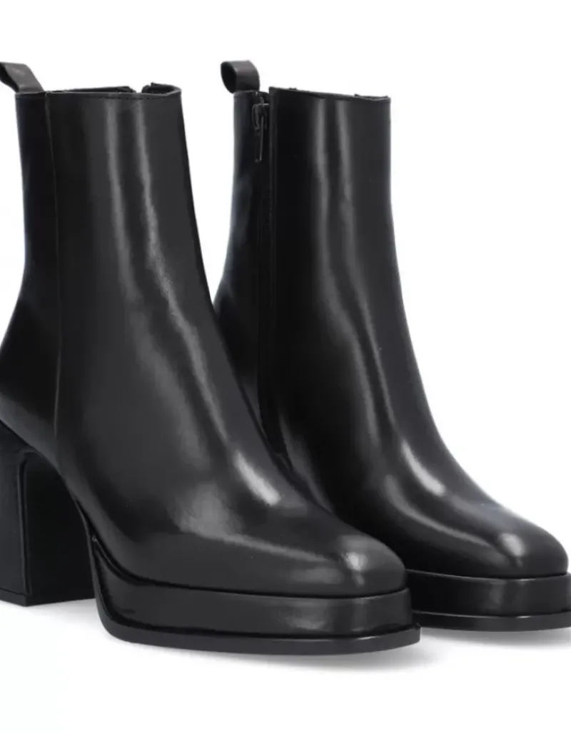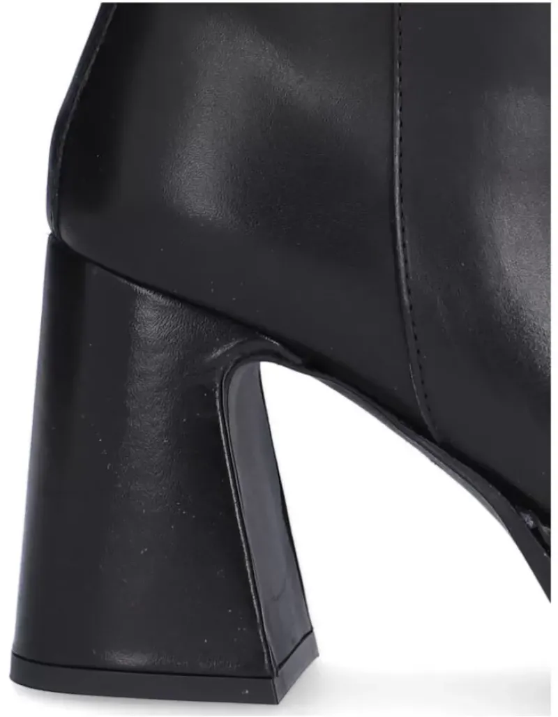 Botin Para Femme Alpe Idanna, Fabricado En Piel (Becerro) De Color Negro Con Tacon De 8,5 Cm, Suela Antideslizante Y Puntera Cuadrada, Con Cierre Mediante Cremallera Y Cana Baja.