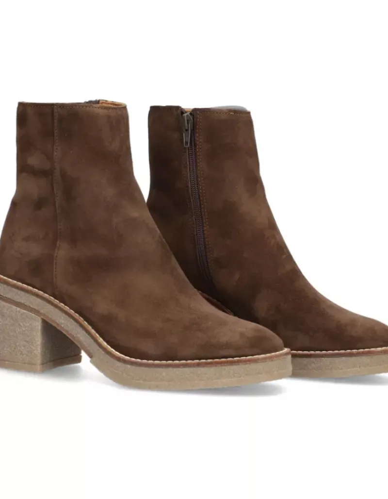Botin Para Femme Alpe Janis, Fabricado En Piel (Baby Silk) De Color Arabica Con Tacon De 7,5 Cm, Suela Antideslizante Y Puntera Redonda, Con Cierre Mediante Cremallera Y Cana Baja.