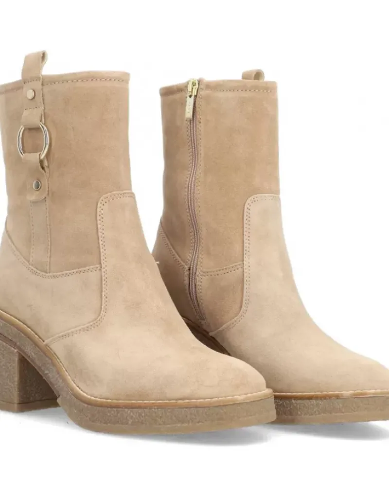 Botin Para Femme Alpe Janis, Fabricado En Piel (Baby Silk) De Color Noisette Con Tacon De 7,5 Cm, Suela Antideslizante Y Puntera Redonda, Con Cierre Mediante Cremallera Media.