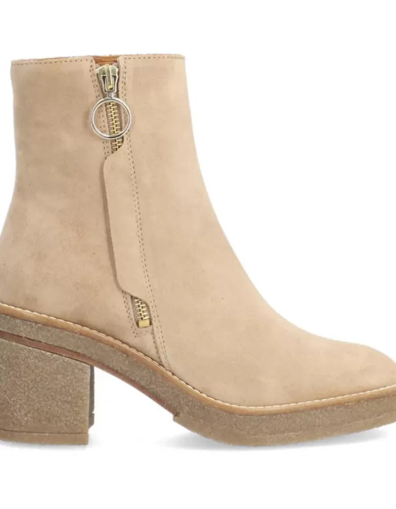 Botin Para Mujer Alpe Janis, Fabricado En Piel (Baby Silk) De Color Noisette Con Tacon De 7,5 Cm, Suela Antideslizante Y Puntera Redonda, Con Cierre Mediante Cremallera Y Cana Baja.