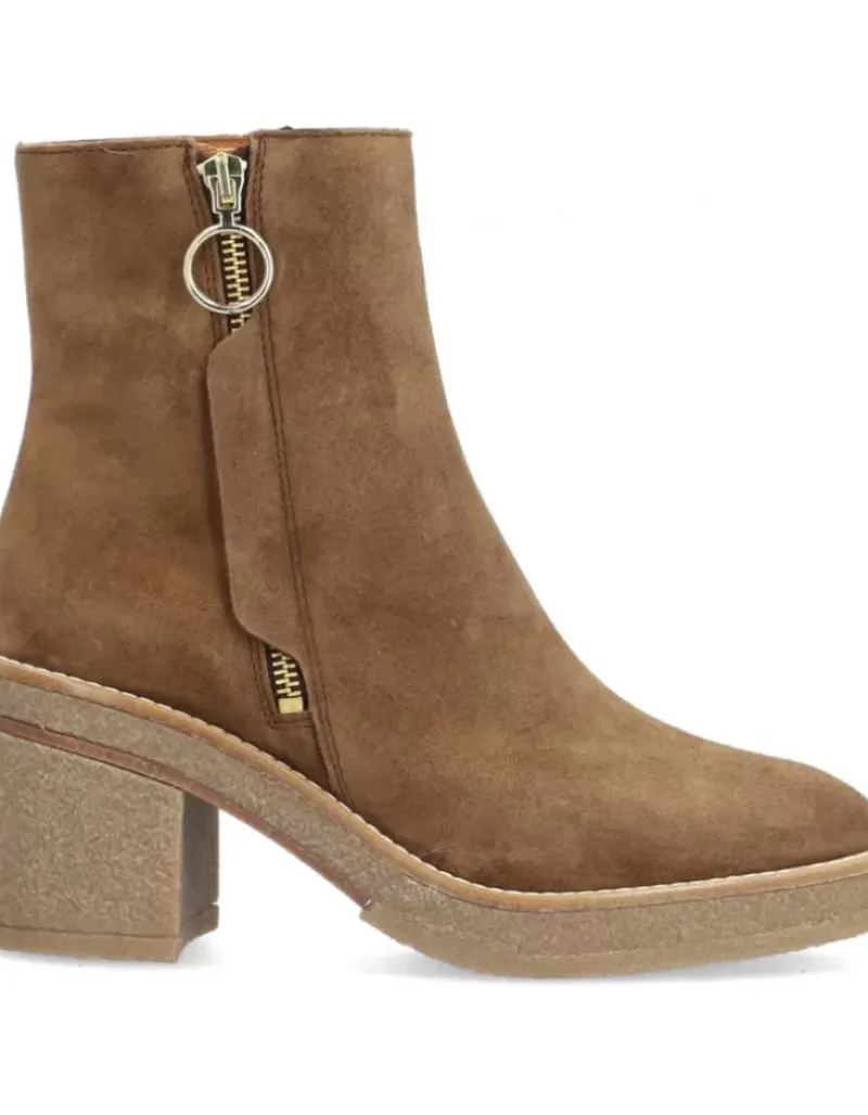 Botin Para Mujer Alpe Janis, Fabricado En Piel (Baby Silk) De Color Sandalo Con Tacon De 7,5 Cm, Suela Antideslizante Y Puntera Redonda, Con Cierre Mediante Cremallera Y Cana Baja.
