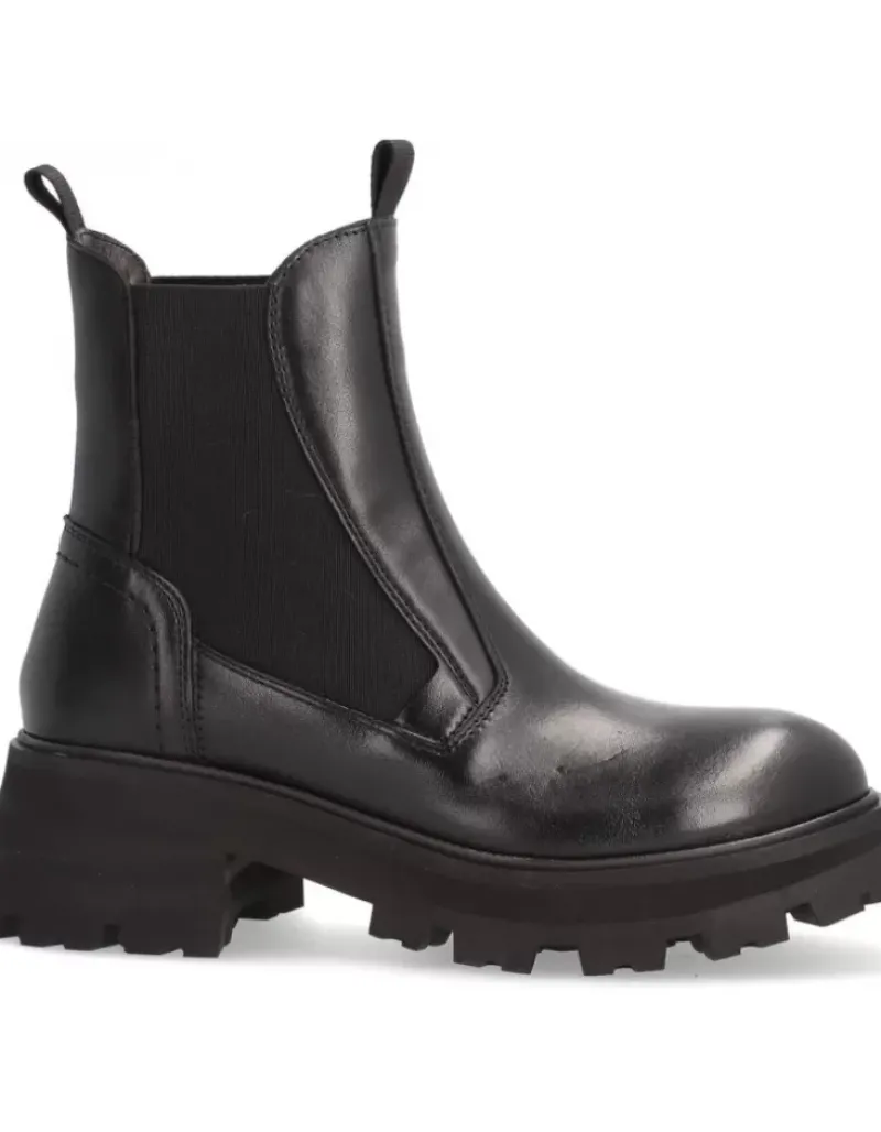 Bota Para Mujer Alpe Jess, Fabricada En Piel (Iseo) De Color Negro Con Tacon De 5 Cm, Suela Antideslizante Y Puntera Redonda, Sin Cierre Y Cana Media.