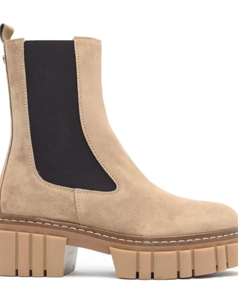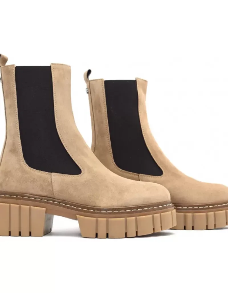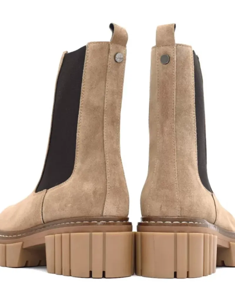 Botin Para Mujer Alpe Keyla, Fabricado En Piel (Baby Silk) De Color Canela Sin Tacon, Suela Antideslizante Y Puntera Redonda, Sin Cierre Y Cana Media.