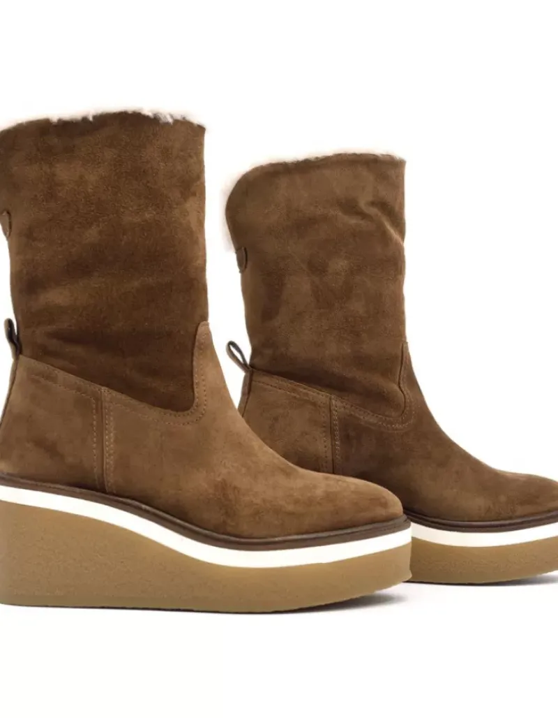 Bota Para Mujer Alpe Kiara, Fabricada En Piel (Baby Silk) De Color Cuero Sin Tacon, Suela Antideslizante Y Puntera Redonda, Sin Cierre Y Cana Media.