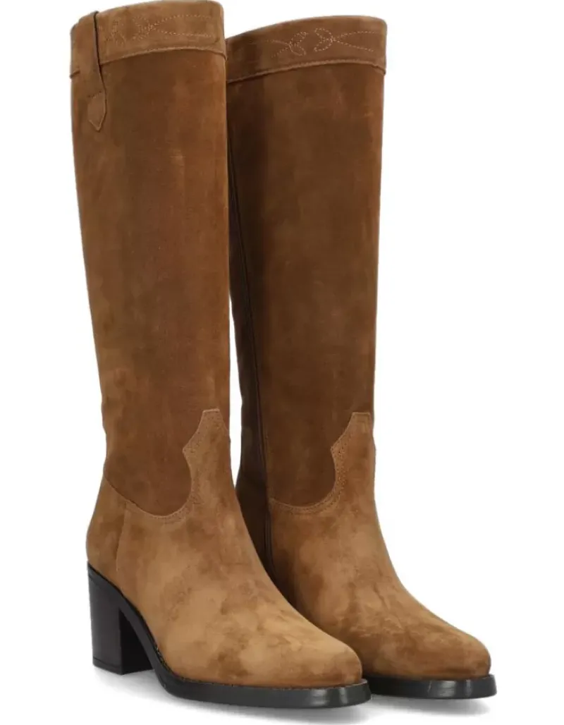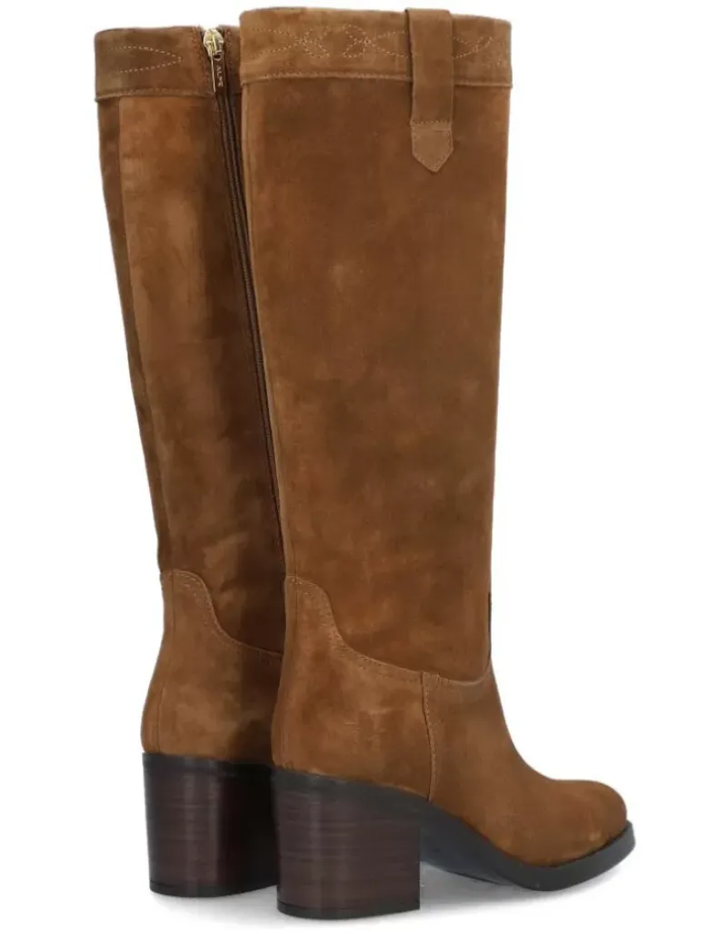 Bota Para Femme Alpe Leyna, Fabricada En Piel (Baby Silk) De Color Cuero Con Tacon De 7 Cm, Suela Antideslizante Y Puntera Redonda, Con Cierre Mediante Cremallera Y Cana Alta.