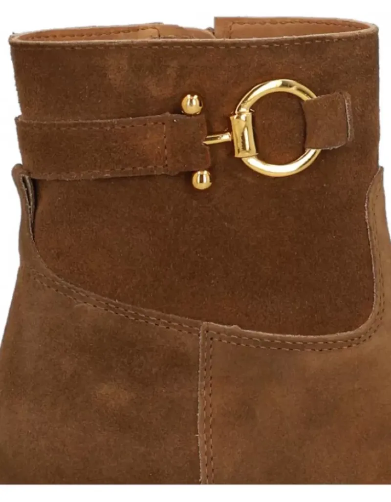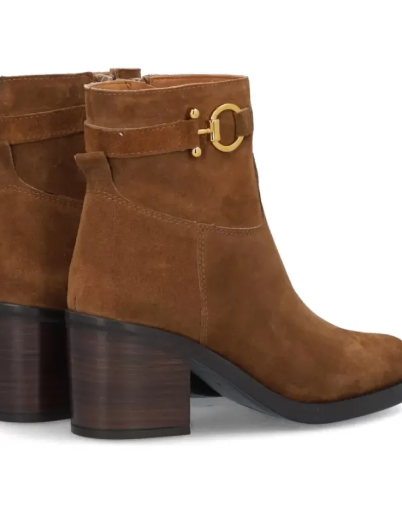 Botin Para Femme Alpe Leyna, Fabricado En Piel (Baby Silk) De Color Cuero Con Tacon De 7 Cm, Suela Antideslizante Y Puntera Redonda, Con Cierre Mediante Cremallera Y Cana Baja.
